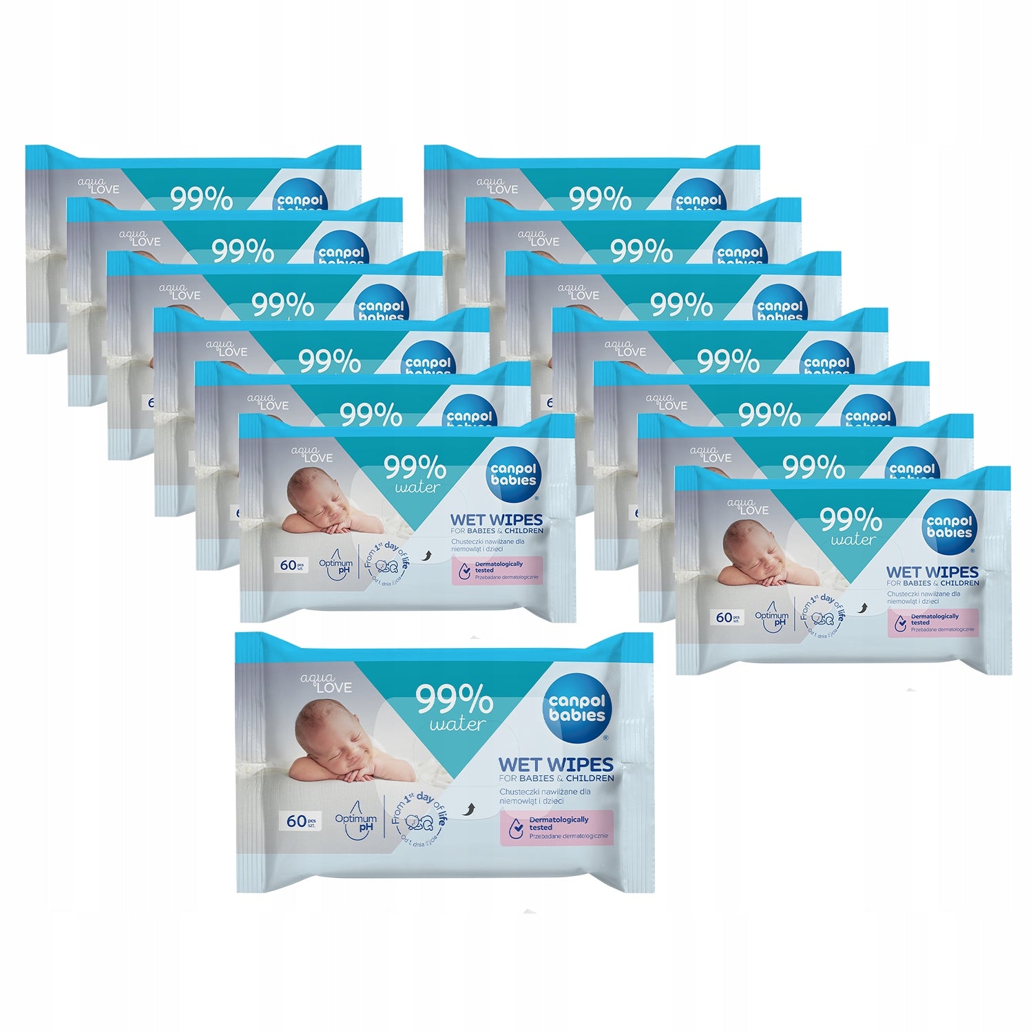 14x Canpol drėgnos servetėlės kūdikiams ir vaikams, 99% vandens, 60 vnt.