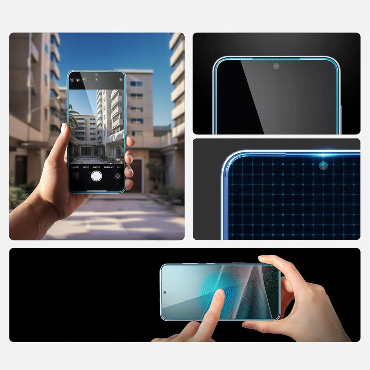 - Dėl apvalintų ekrano kraštų (ypač naujuose modeliuose) ir gamyklinio ekrano išlenkimo, stiklas yra išpjautas tik iki plokščios ekrano dalies, paliekant minimalią, nepadengtą erdvę aplink kraštus, kad būtų užtikrintas visiškas suderinamumas su dėklais.