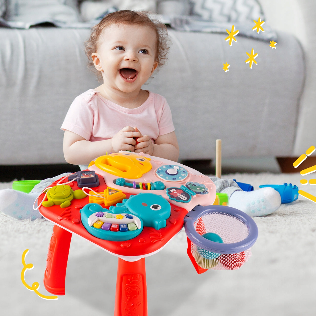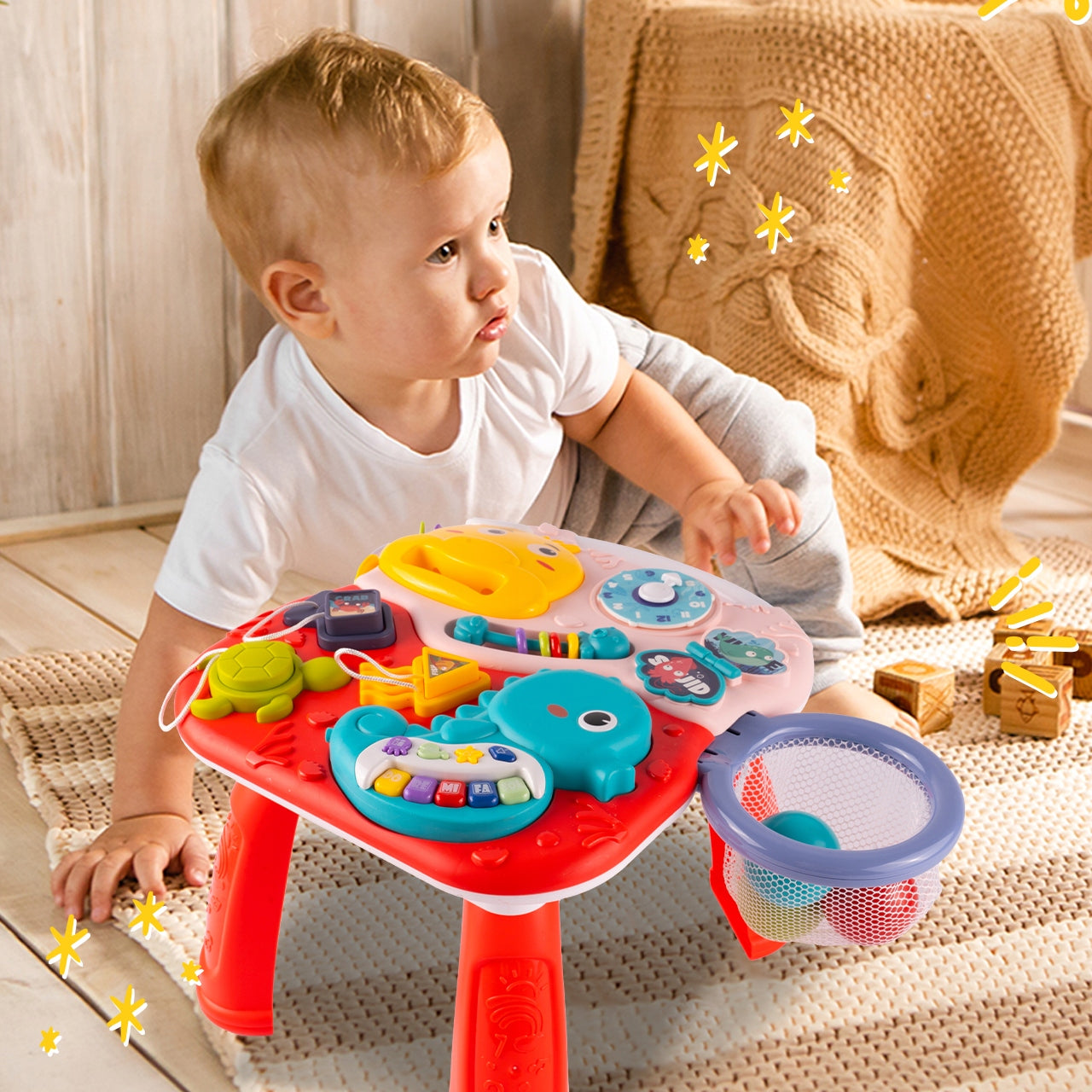 Atraskite magišką pasaulį su interaktyviu edukaciniu staliuku "Vandenyno pasaulis"! Šis unikalus 2in1 žaislas – tai ne tik spalvingas žaidimų centras, bet ir lavinamasis įrankis, sukurtas skatinti jūsų vaiko smalsumą, motorinius įgūdžius ir pažintinius gebėjimus. Staliukas kviečia mažylius tyrinėti daugybę funkcijų: nuo muzikinio pianino iki krepšinio metimo praktikos. "Vandenyno pasaulio" tema ir ryškios spalvos traukia akį, o daugybė mygtukų, besisukančių elementų ir garso efektų užtikrina ilgalaikį vaiko susidomėjimą. Tai puiki priemonė, padėsianti atrasti naujus garsus, formas ir lavinti koordinaciją bei loginį mąstymą. Jūsų mažylis patirs daug džiaugsmo tyrinėdamas šį daugiafunkcinį žaislą, kuris auga kartu su juo.