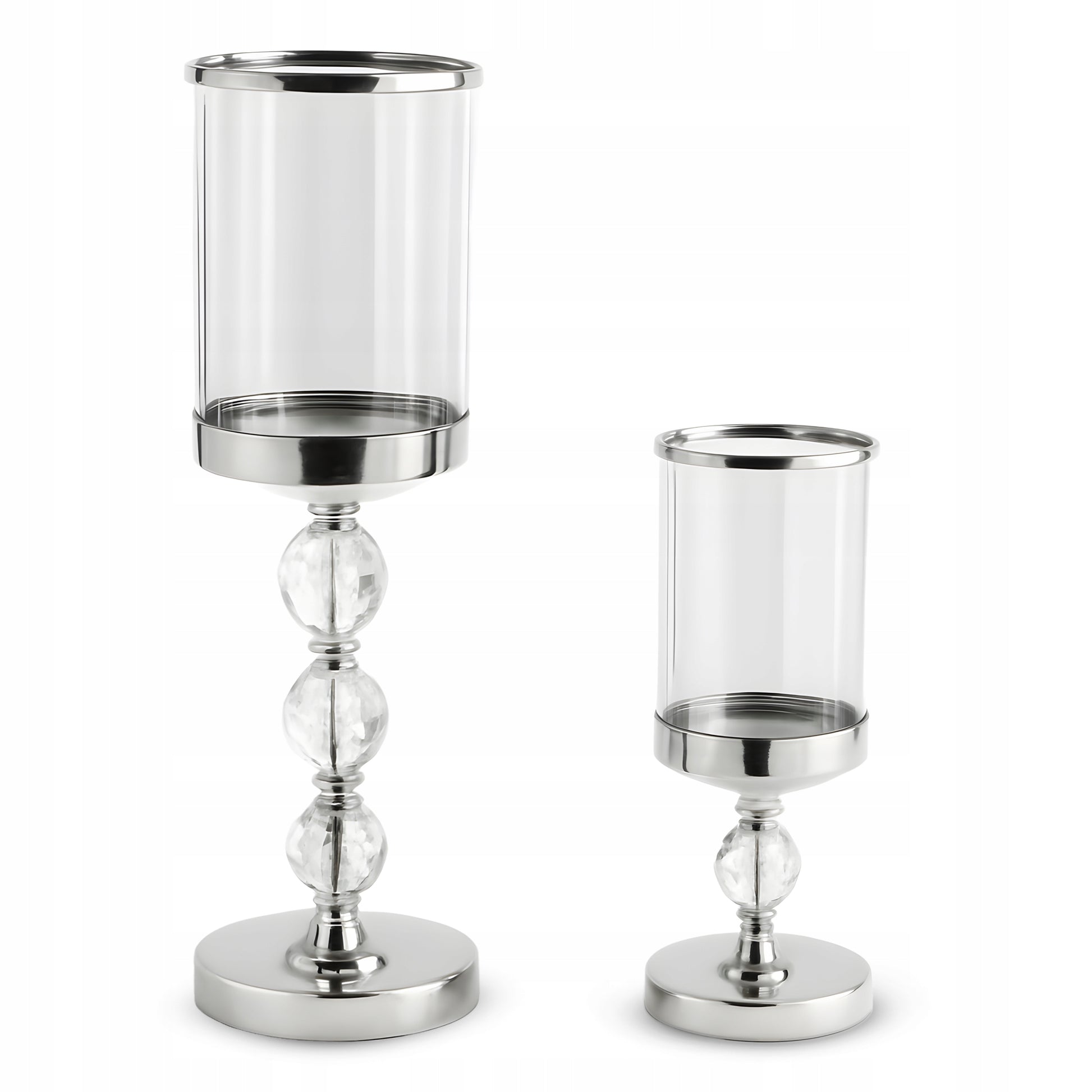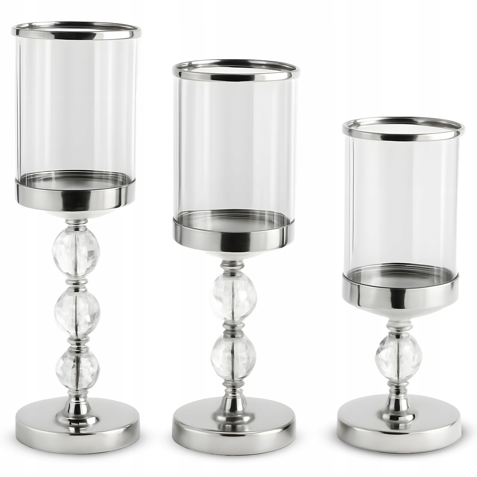 Sukurkite nepamirštamą atmosferą su šiuo prabanga spinduliuojančiu 3 žvakių žvakidžių rinkiniu, kurio dizainas primena taurę. Šios dekoratyvinės žvakidės, pagamintos iš aukštos kokybės stiklo ir metalo, suteiks jūsų interjerui išskirtinio žavesio ir elegancijos. Trys skirtingi aukščiai (28 cm, 34,3 cm ir 40,9 cm) leidžia kurti dinamiškas ir akį traukiančias kompozicijas ant bet kokio paviršiaus. Srebrnos-permatomos spalvos derinys puikiai dera su bet kokiu interjero stiliumi, o tvirtas 12 cm skersmens pagrindas užtikrina stabilumą ir saugumą.