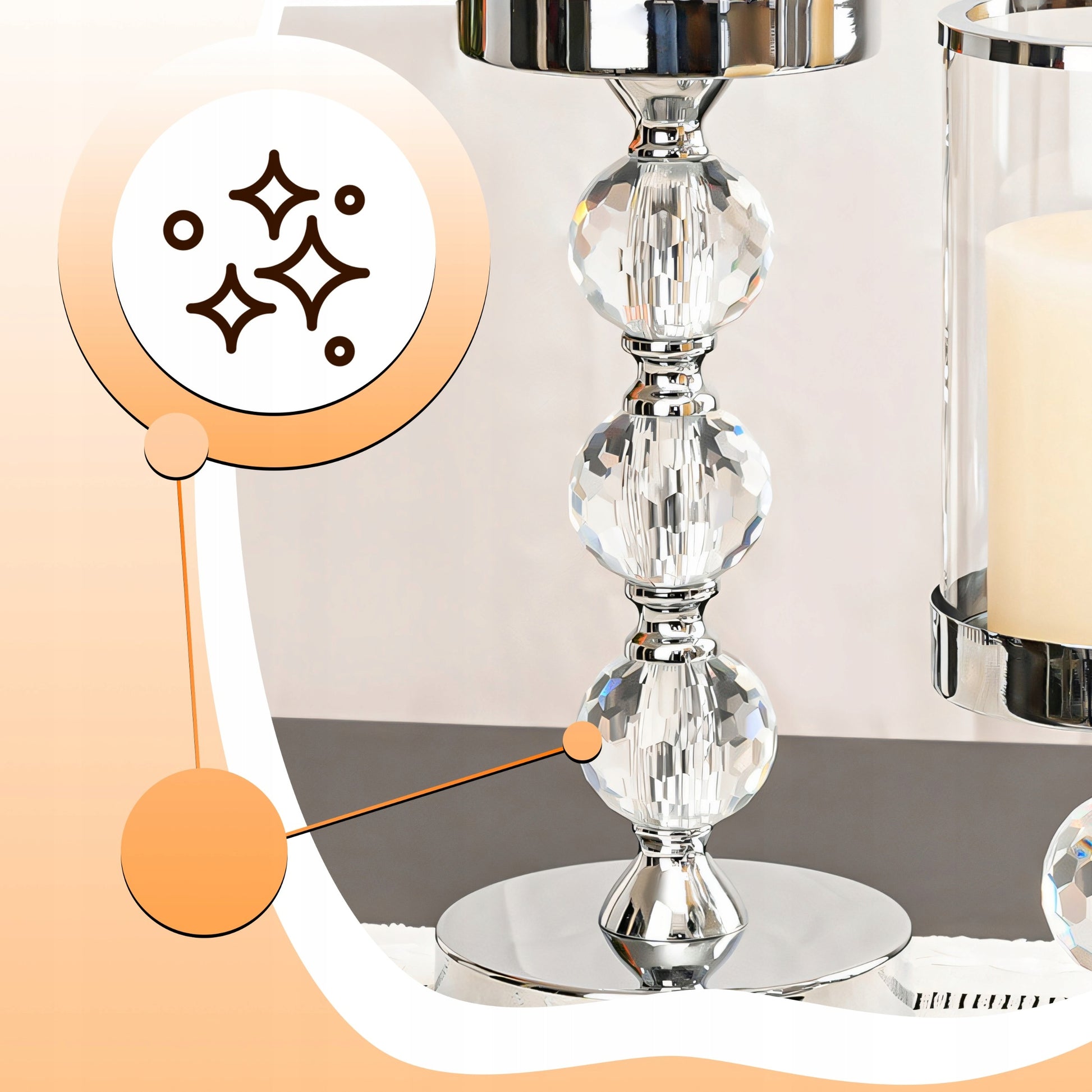 Šios žvakidės – tai ne tik paprastas namų aksesuaras, bet ir meno kūrinys. Glamour stilius pasižymi prabanga, blizgesiu ir rafinuotumu. Taurės formos dizainas, derinamasis su blizgančiais metaliniais elementais ir permatomu stiklu, sukuria akimirksniu pastebimą prabangos jausmą. Jos idealiai tinka jūsų svetainei, valgomajam ar net šventiniam stalui papuošti. Šviesos žaismas, sklindantis pro stiklinius gaubtus, sukuria šiltą, jaukią ir magišką aplinką, kuri pakylėja nuotaiką ir leidžia atsipalaiduoti.