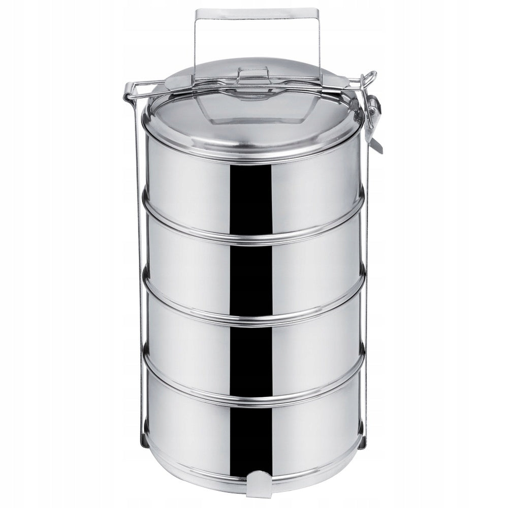Ši keturių pakopų maisto nešyklė yra pagaminta iš aukštos kokybės, maisto pramonei skirto nerūdijančio plieno. Ši medžiaga yra ne tik itin patvari ir atspari korozijai, bet ir visiškai saugi sveikatai, nesukelianti pašalinių skonių ar kvapų maisto produktuose. Dėl tvirtos plieno konstrukcijos, nešyklė tarnaus Jums daugelį metų, atlaikydama dažną naudojimą ir transportavimą. Tai ekologiškas ir ilgaamžis pasirinkimas, atitinkantis aukščiausius Europos standartus. Plieniniai indai lengvai prižiūrimi ir yra atsparūs smūgiams, todėl puikiai tinka naudoti lauke, kur aplinkos sąlygos gali būti iššūkis.