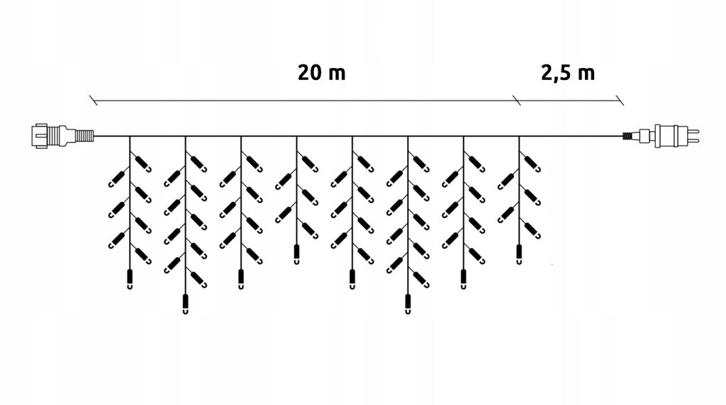 - Bendras ilgis: 22,5 m (apšvietimo dalis – 20 m, maitinimo laidas – 2,5 m)
