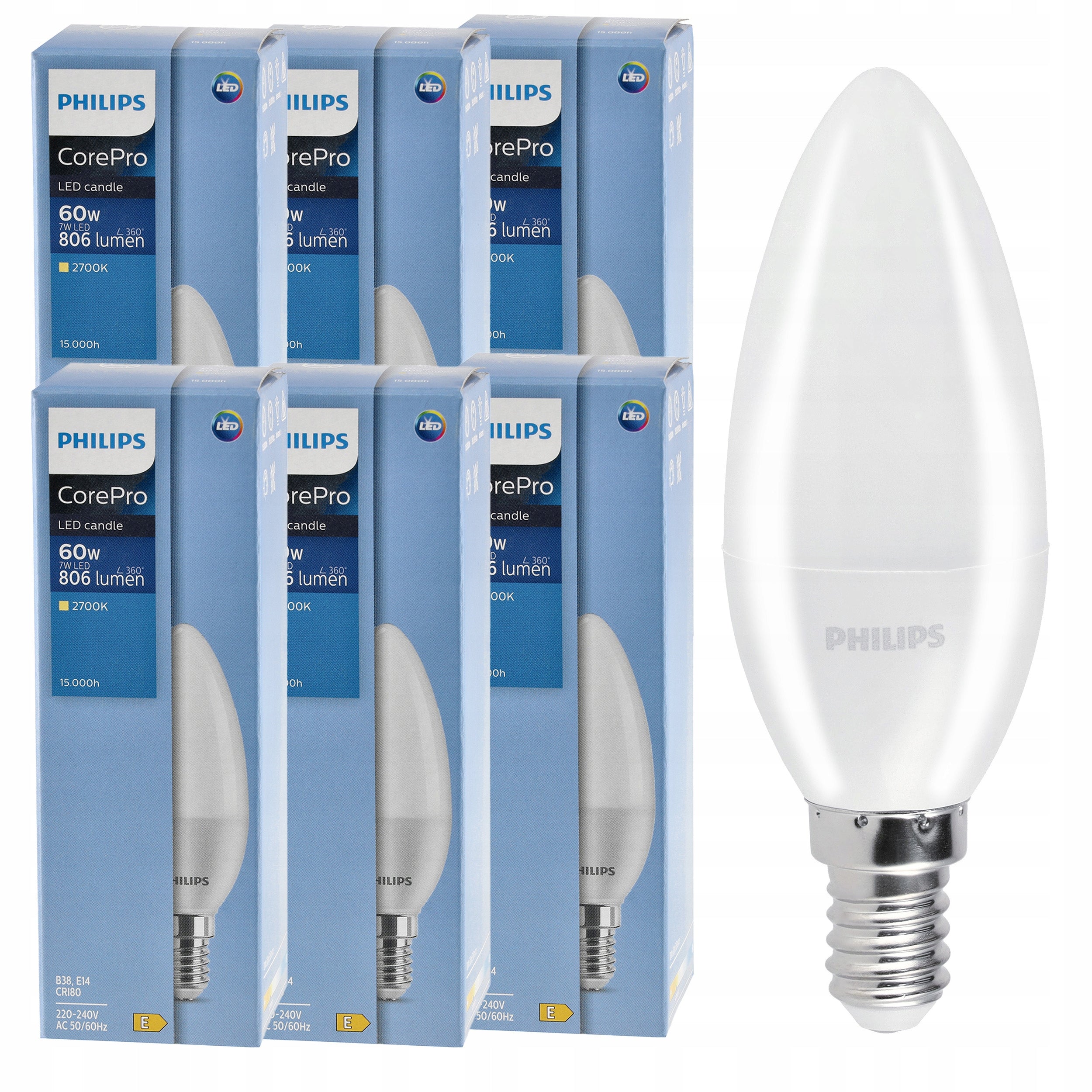 6x LED lemputė E14 PHILIPS 7W=60W 806lm Spalva 2700k Premium Žvakidė Rinkinys
