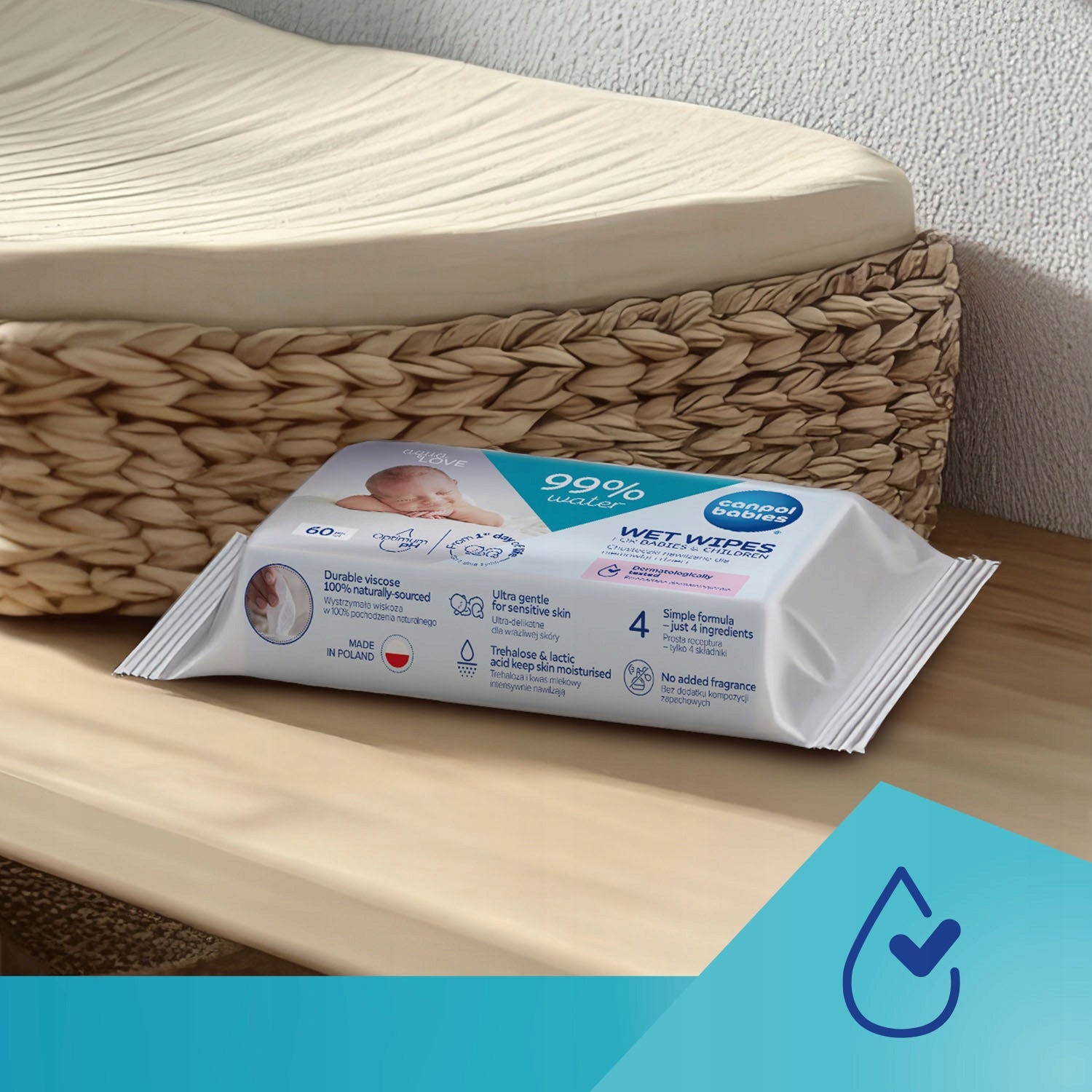 - Švelnumas ir saugumas: Sukurtos su 99% vandens, be parabenų, alkoholio ir kvapiklių, idealiai tinka net ir naujagimiams.