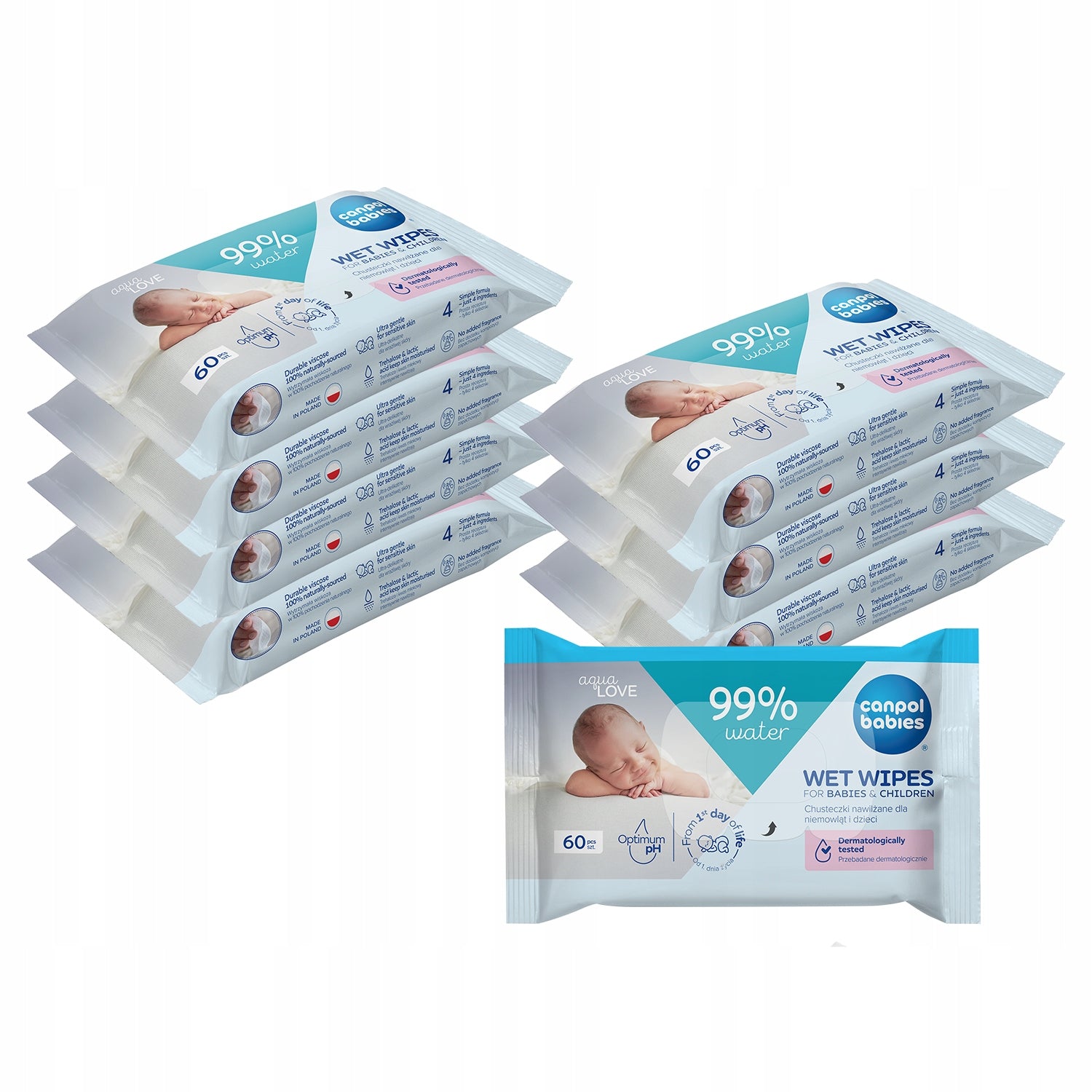 8 vnt. Canpol Drėgnos servetėlės kūdikiams ir vaikams, 99% vandens, 60 vnt.