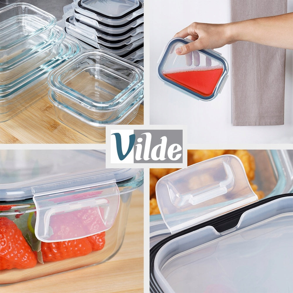 Šie Vilde prekės ženklo maisto konteineriai yra sukurti taip, kad atitiktų šiuolaikinio namų ūkio poreikius. Borosilikatinis stiklas yra ne tik atsparus karščiui (iki 450°C) ir šalčiui (iki -30°C), bet ir inertiškas, todėl nesąveikauja su maistu ir nepakeičia jo skonio. Kiekvienas konteineris yra su dangteliu, aprūpintu patikimu keturių užsegimų mechanizmu ir juoda silikonine tarpine, kuri garantuoja, kad oras ir drėgmė nepateks į vidų, o maistas išliks šviežias ir neprarandantis aromato. Skaidrus dangtelis leidžia akimirksniu identifikuoti turinį neatsidarant indo, o skirtingi dydžiai suteikia lankstumo.