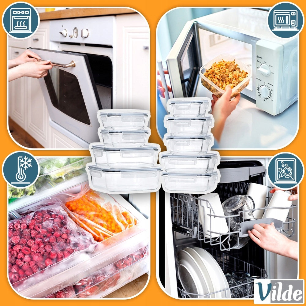 Šie universalaus pritaikymo stikliniai konteineriai yra nepakeičiami įrankiai kiekvienoje virtuvėje. Jie puikiai tinka ne tik maisto produktams laikyti šaldytuve ar spintelėse, bet ir maisto kelionei į darbą, iškyloms ar maisto ruošimui iš anksto. Juose galima laikyti įvairius produktus: nuo birios produkcijos (makaronų, kruopų, miltų) iki virtų patiekalų, salotų, vaisių, sūrio ar dešros. Be to, jie yra atsparūs aukštai temperatūrai, todėl juos galima naudoti maistui atšaldyti, o vėliau – atšildyti mikrobangų krosnelėje (be dangtelio) ar net kepti maistą orkaitėje (taip pat be dangtelio). Tai leidžia ruošti maistą ir laikyti jį viename inde, supaprastinant maisto ruošimo procesą ir valymą.