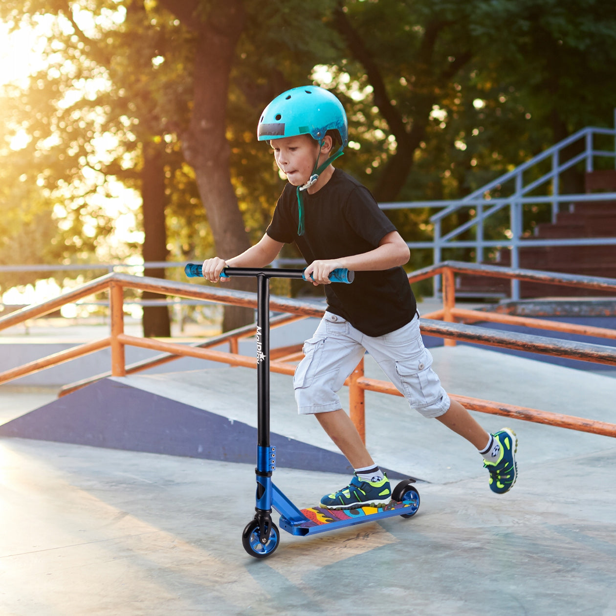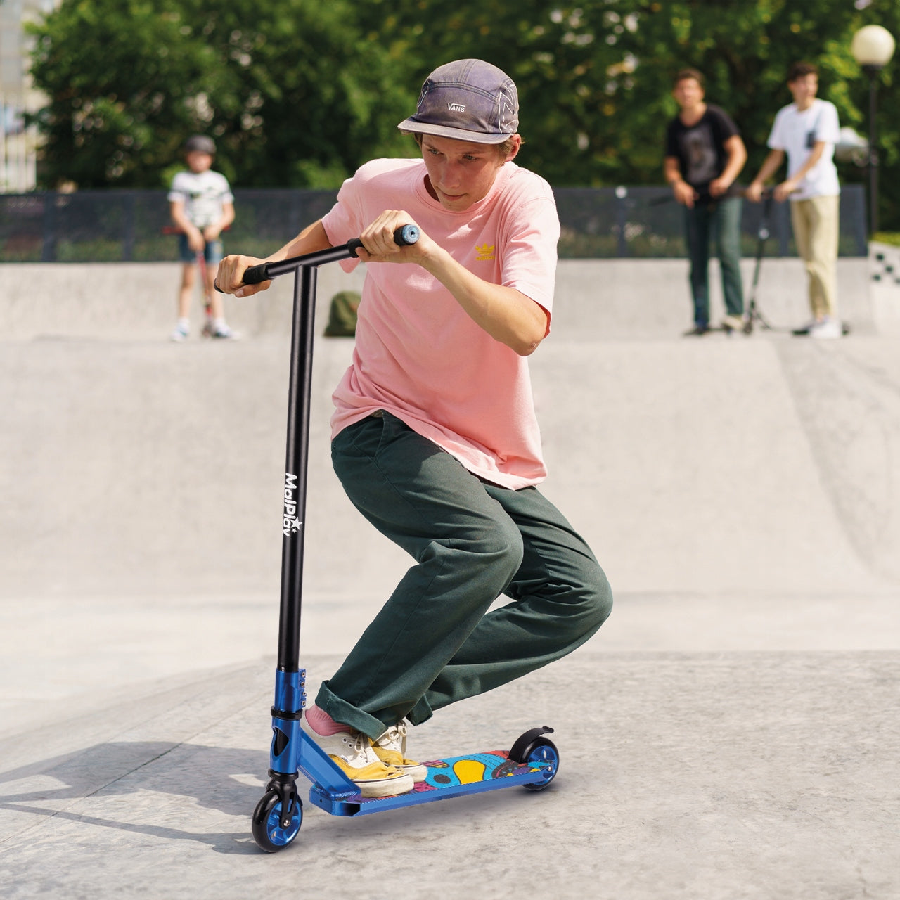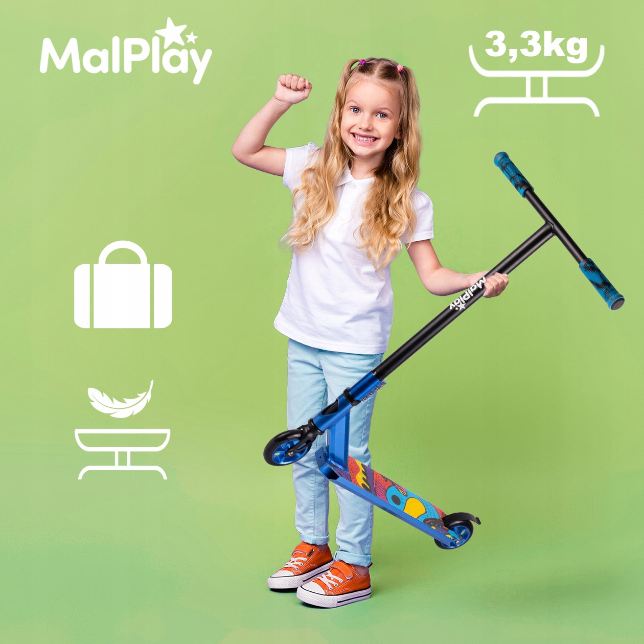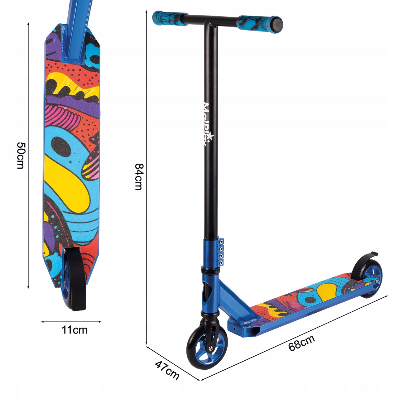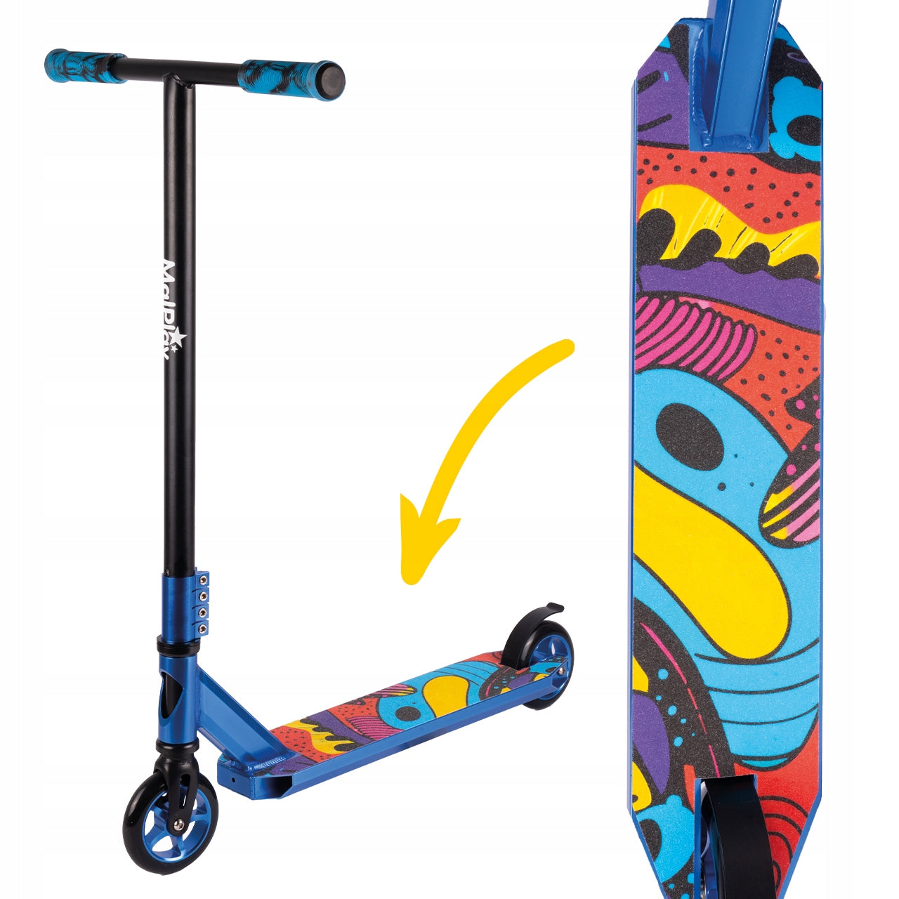 Šis tvirtas paspirtukas sukurtas atlaikyti intensyvų naudojimą ir įvairius triukus. Sutvirtinta T formos vairas suteikia puikų stabilumą atliekant šuolius ir manevrus, o neslystantis padas užtikrina maksimalią kontrolę net ir dinamiškiausio važiavimo metu. 105 mm skersmens PU ratukai pasižymi puikia sukibimu su danga ir ilgaamžiškumu, todėl galėsite drąsiai mėgautis kiekviena kelione, jausdami pasitikėjimą ir saugumą. Jo vos 3,3 kg svoris leidžia lengvai jį transportuoti, o ryški grafika ant platformos traukia akį.