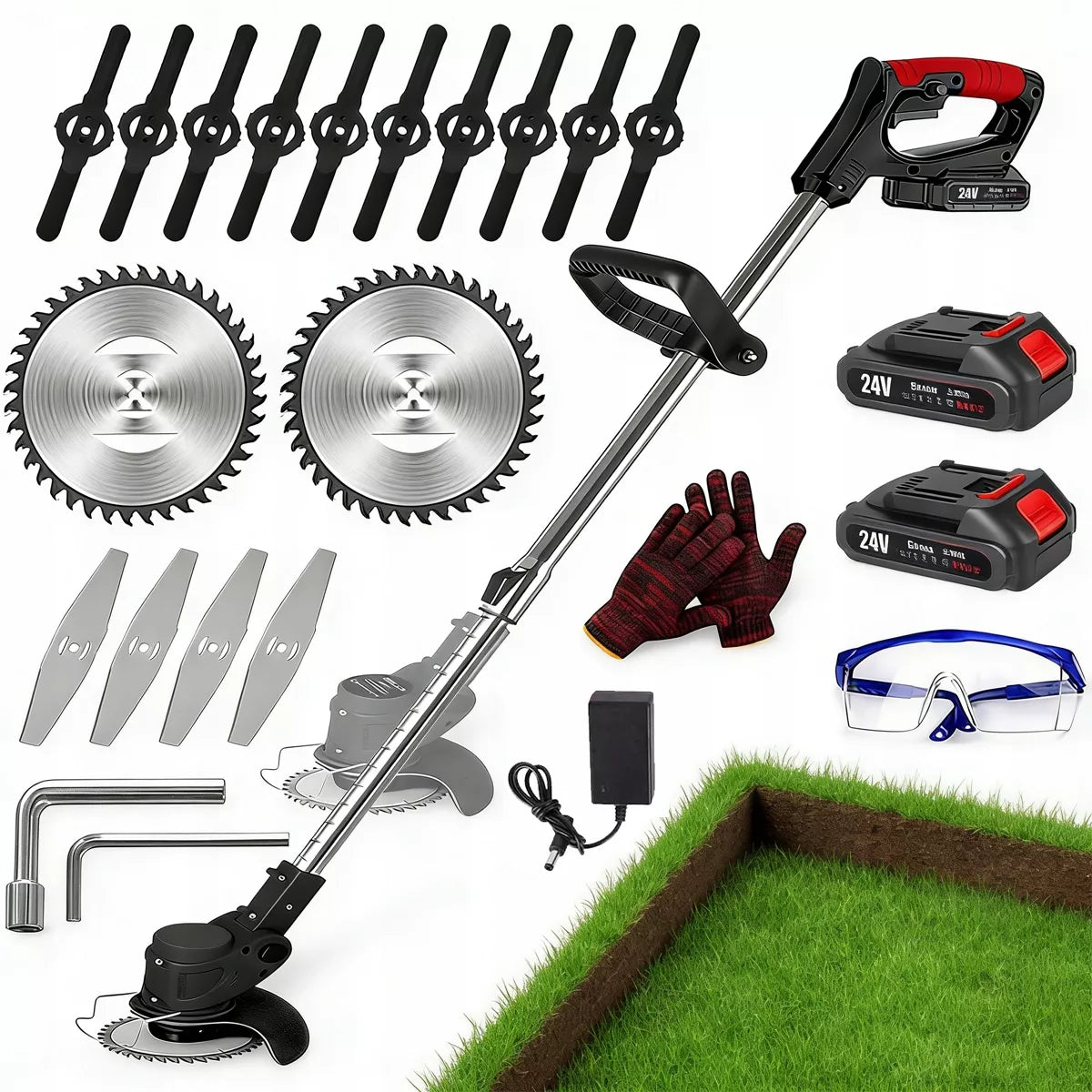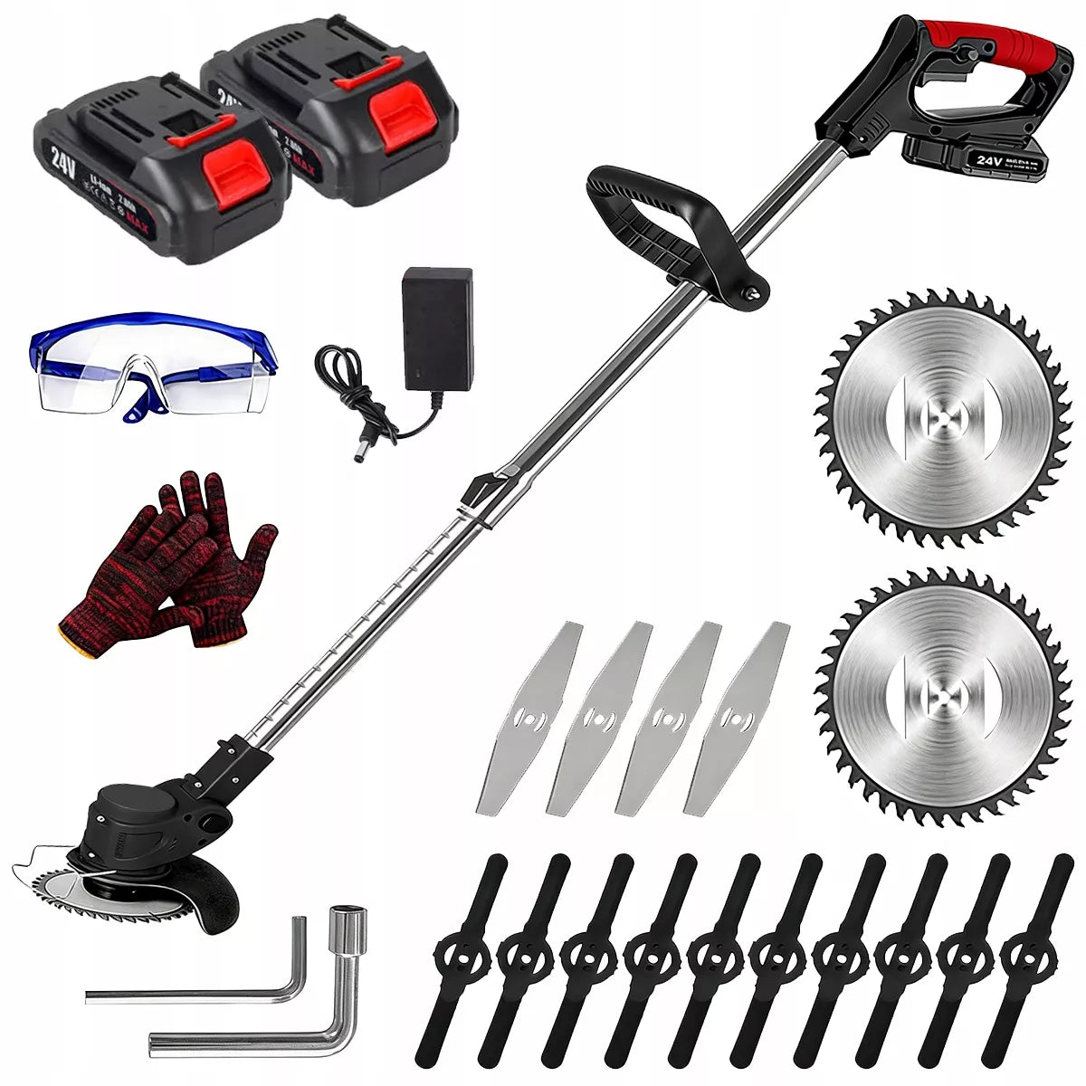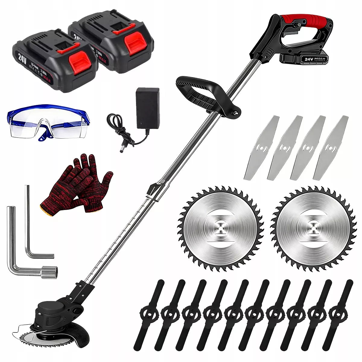 Ši belaidė 24 V elektrinė žoliapjovė yra puikus įrankis, skirtas efektyviam ir patogiam sodo bei vejos priežiūrai. Dėka teleskopinio koto ir pridedamų galingų akumuliatorių, šis prietaisas užtikrina maksimalų mobilumą ir laisvę dirbant net atokiausiuose sklypo kampuose. Lengva konstrukcija leidžia manevruoti be didelių pastangų, o įvairūs peilių tipai užtikrina universalumą pjaunant tiek smulkią žolę, tiek kietesnius krūmus ar atžalas.