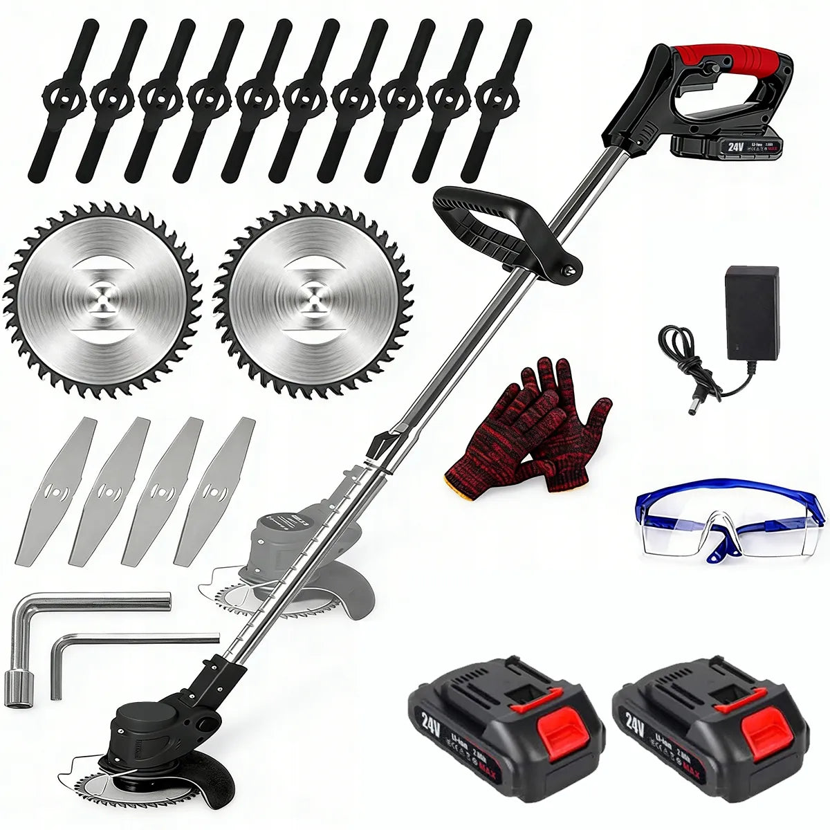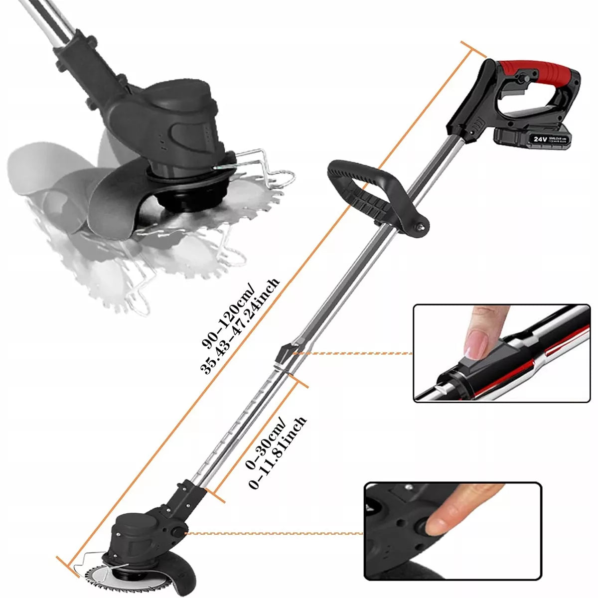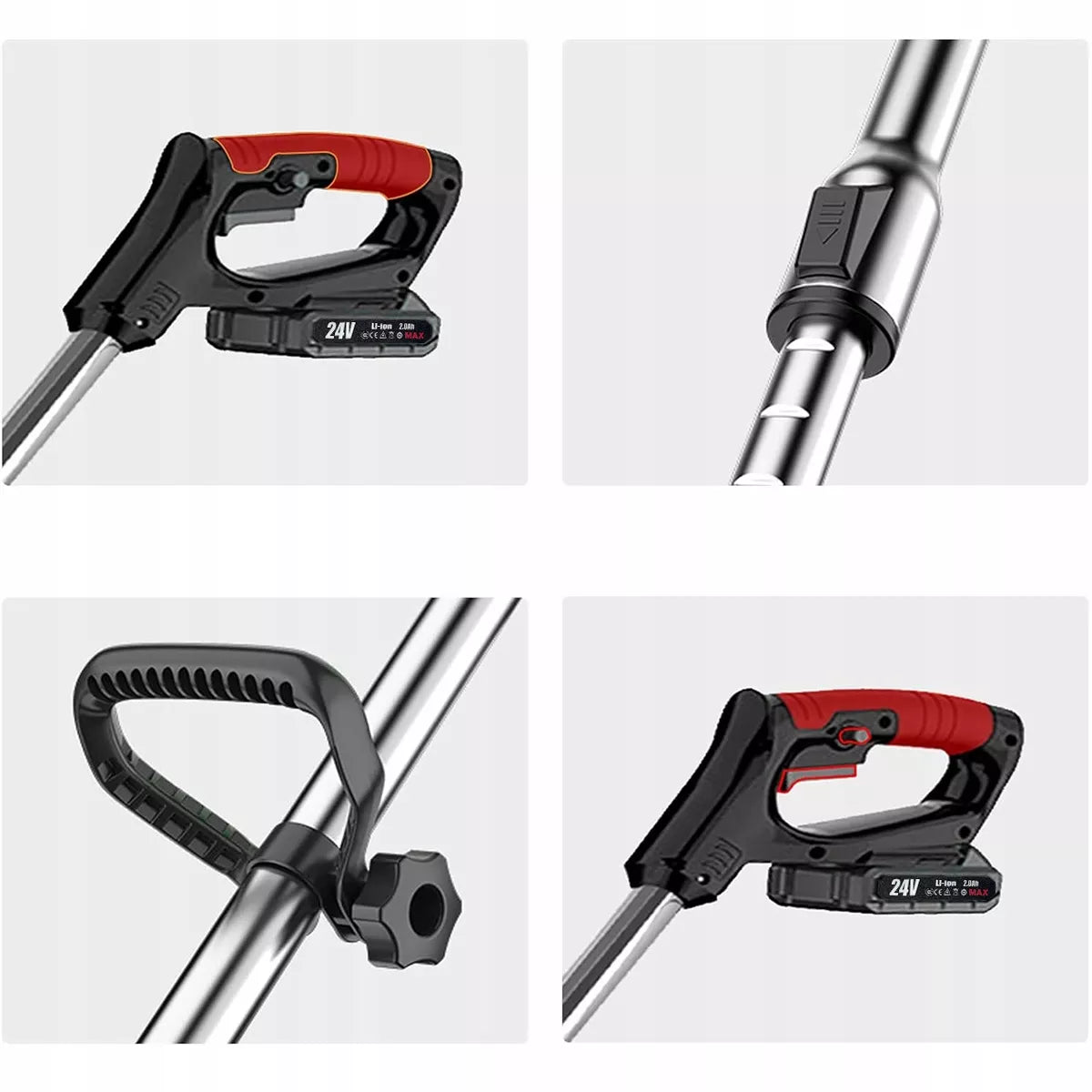 Ši belaidė 24 V elektrinė žoliapjovė yra puikus įrankis, skirtas efektyviam ir patogiam sodo bei vejos priežiūrai. Dėka teleskopinio koto ir pridedamų galingų akumuliatorių, šis prietaisas užtikrina maksimalų mobilumą ir laisvę dirbant net atokiausiuose sklypo kampuose. Lengva konstrukcija leidžia manevruoti be didelių pastangų, o įvairūs peilių tipai užtikrina universalumą pjaunant tiek smulkią žolę, tiek kietesnius krūmus ar atžalas.