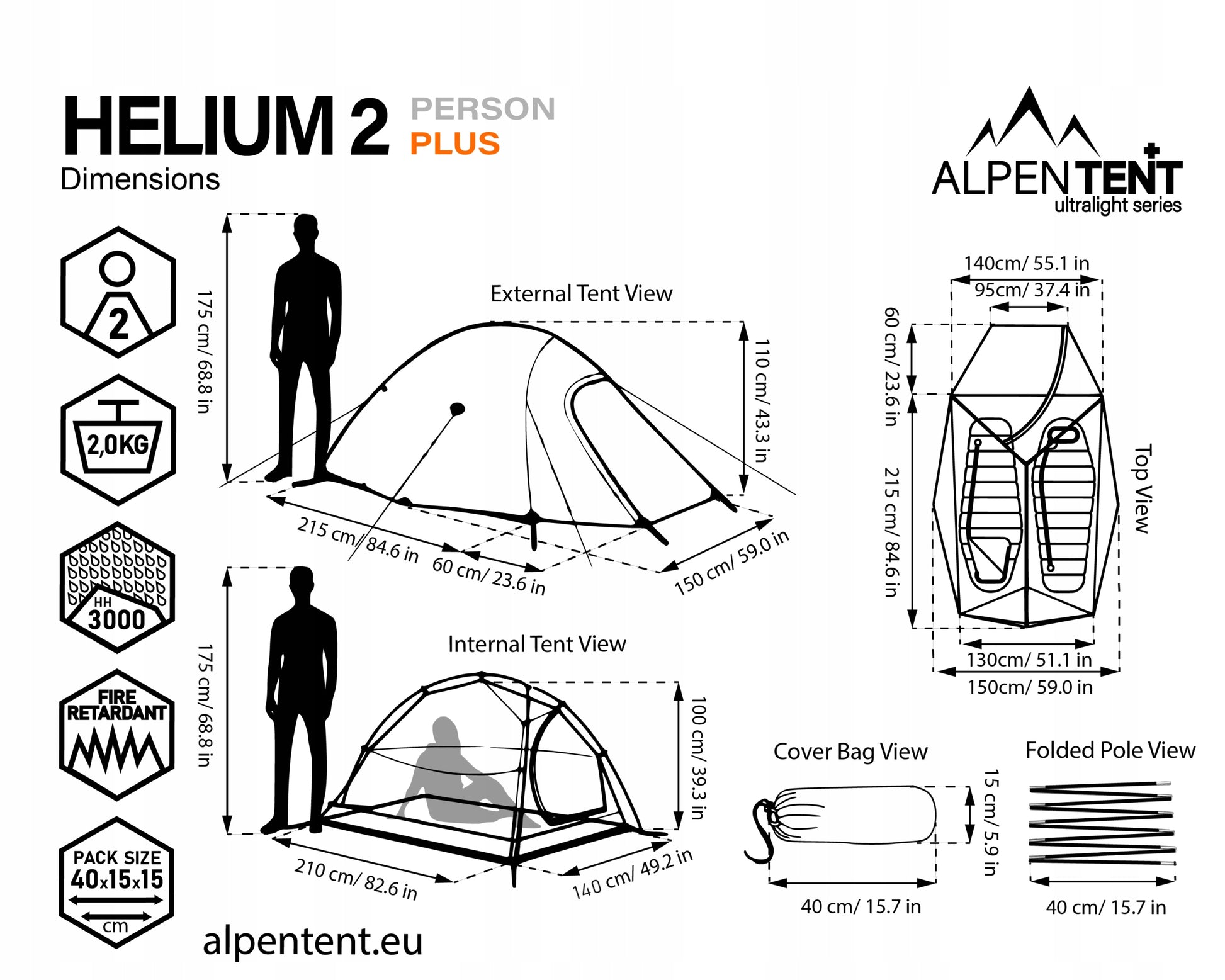 AlpenTent Helium 2 Plus yra aukštos kokybės, lengva ir praktiška palapinė, tinkanti įvairioms ekspedicijoms ir kelionėms gamtoje.