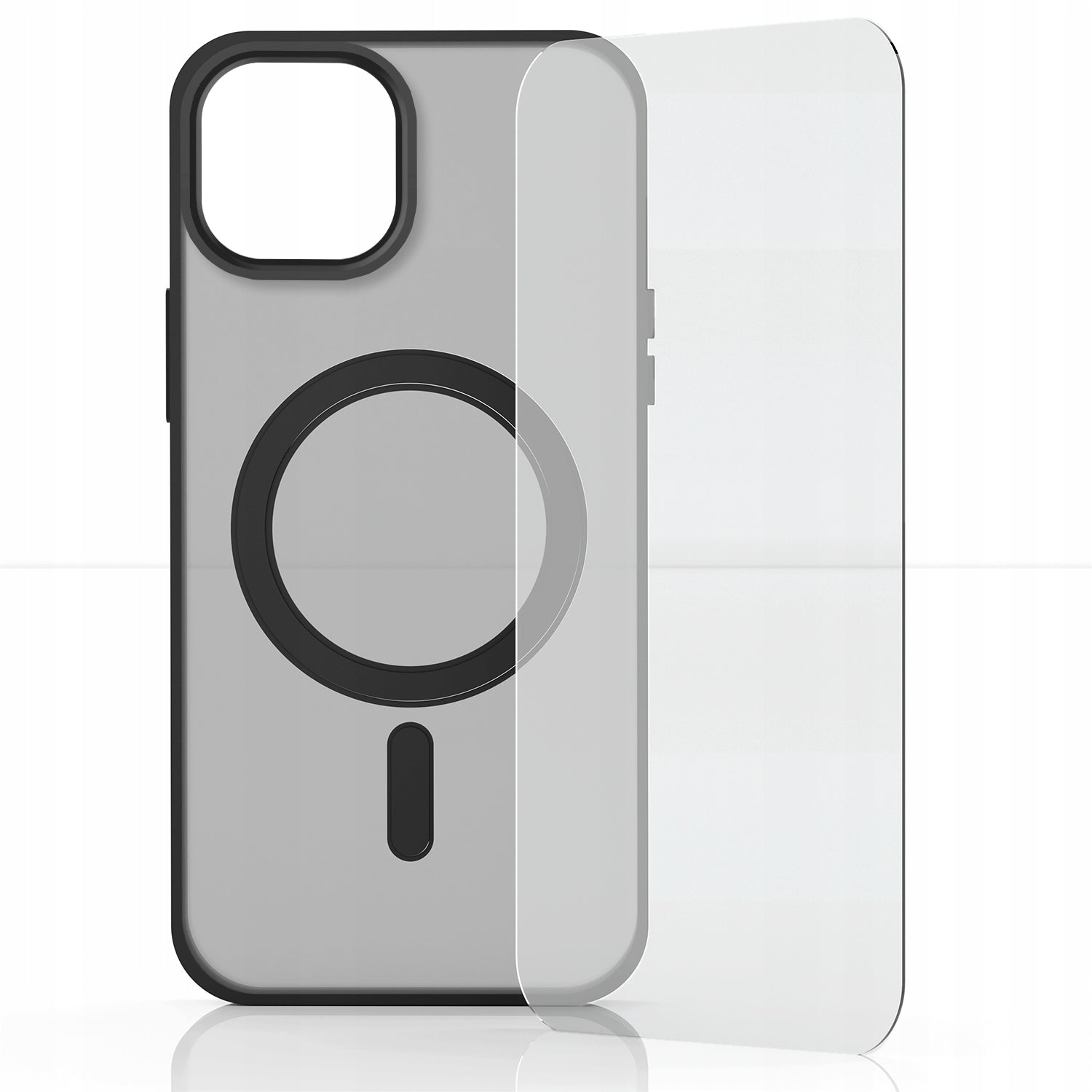 Apple iPhone 15 dėklas (Magsafe, Matinis Juodas, Sutvirtintas) + 9H Stiklas
