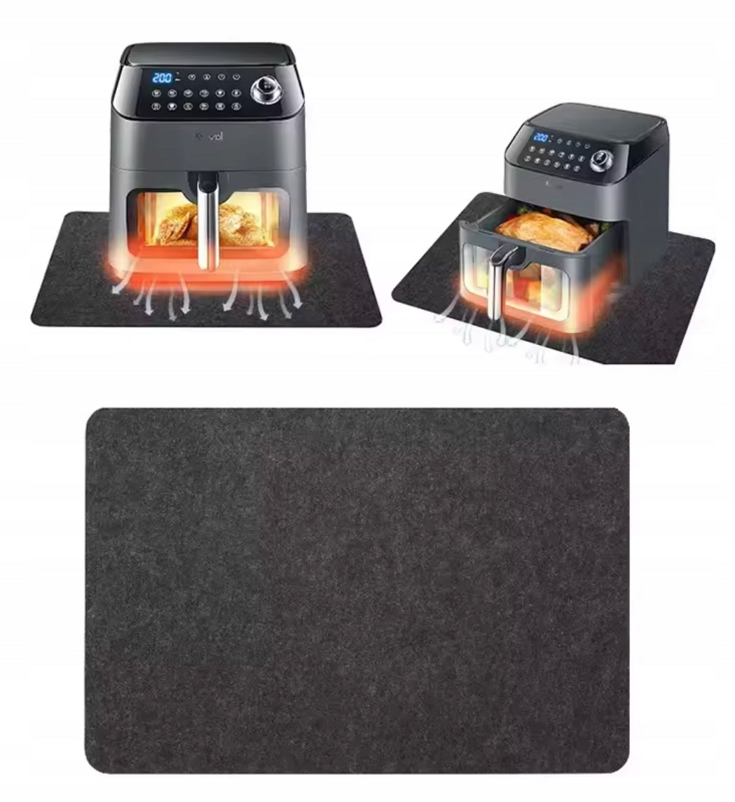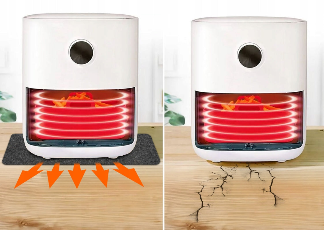 Mūsų specialiai sukurtas apsauginis kilimėlis yra nepakeičiamas akcentas kiekvienoje modernioje virtuvėje, ypač jei mėgstate naudotis be aliejaus veikiančia "air fryer" gruzdintuve ar kitais karštais prietaisais. Šis tvirtos konstrukcijos kilimėlis veiksmingai izoliuoja jūsų stalviršius nuo intensyvios karščio, sklindančio iš prietaiso, taip gerokai sumažindamas riziką pažeisti paviršių aukšta temperatūra. Dėl to galėsite be jokių rūpesčių dėti savo "air fryer" ant bet kokio paviršiaus, net ir to, kuris yra itin jautrus karščiui.