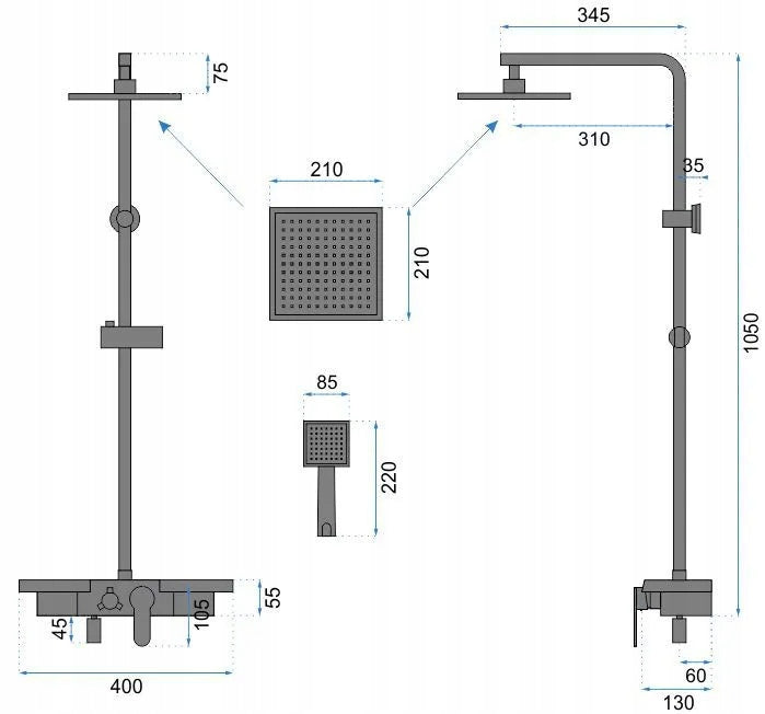 - Reguliuojamo aukščio dušo stovas (105 cm), leidžiantis pritaikyti dušą pagal jūsų poreikius.