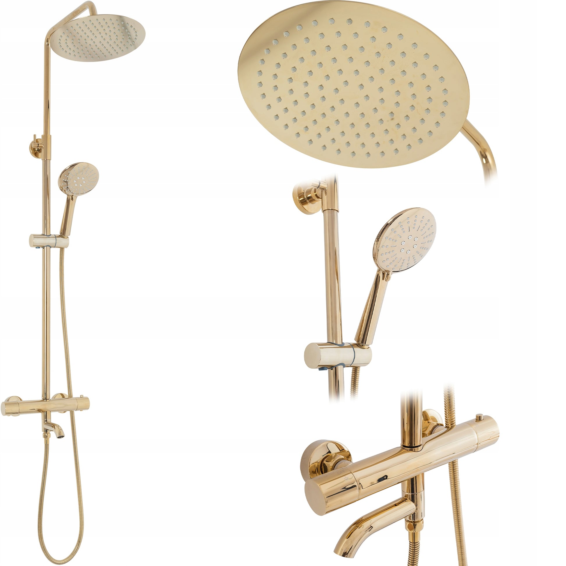 Auksinis paviršinio montavimo dušo komplektas su termostatu voniai REA LUNGO GOLD