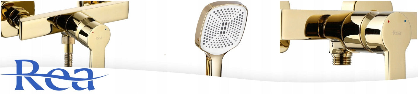 Auksinis sieninis dušo maišytuvas su galvute voniai, REA ARGUS GOLD