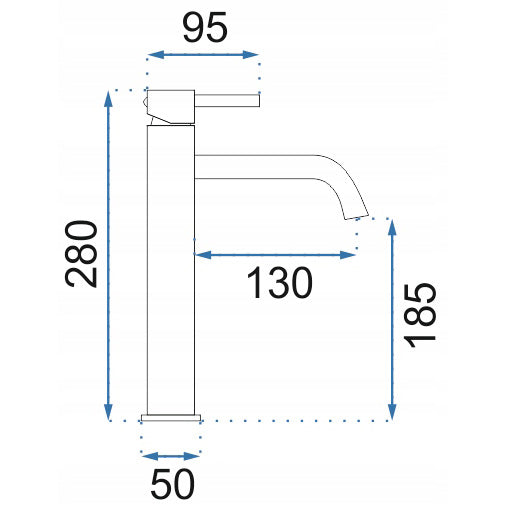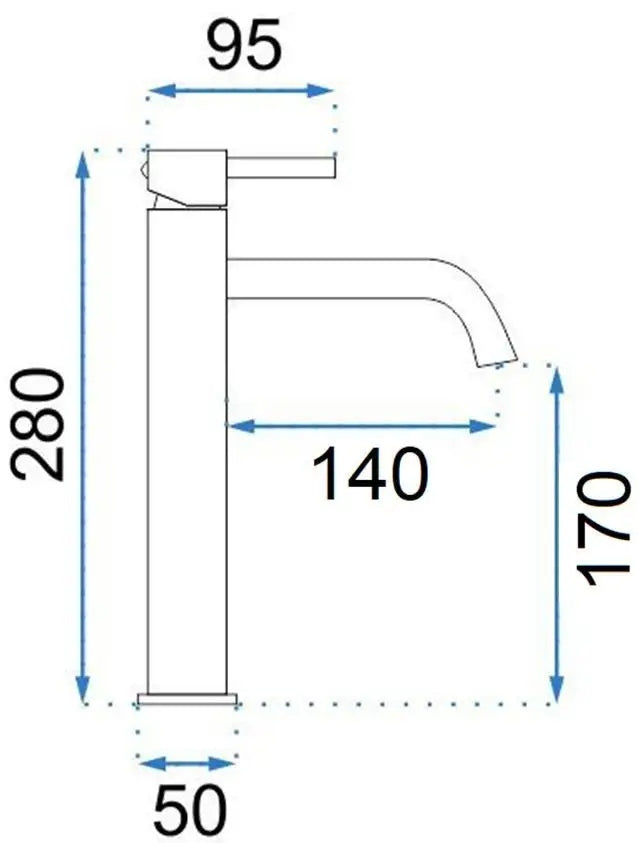 - Maišytuvas yra aukštas ir pastatomas ant stalviršio, todėl tinkamas tam tikro tipo praustuvams ir stalviršių konfigūracijoms.