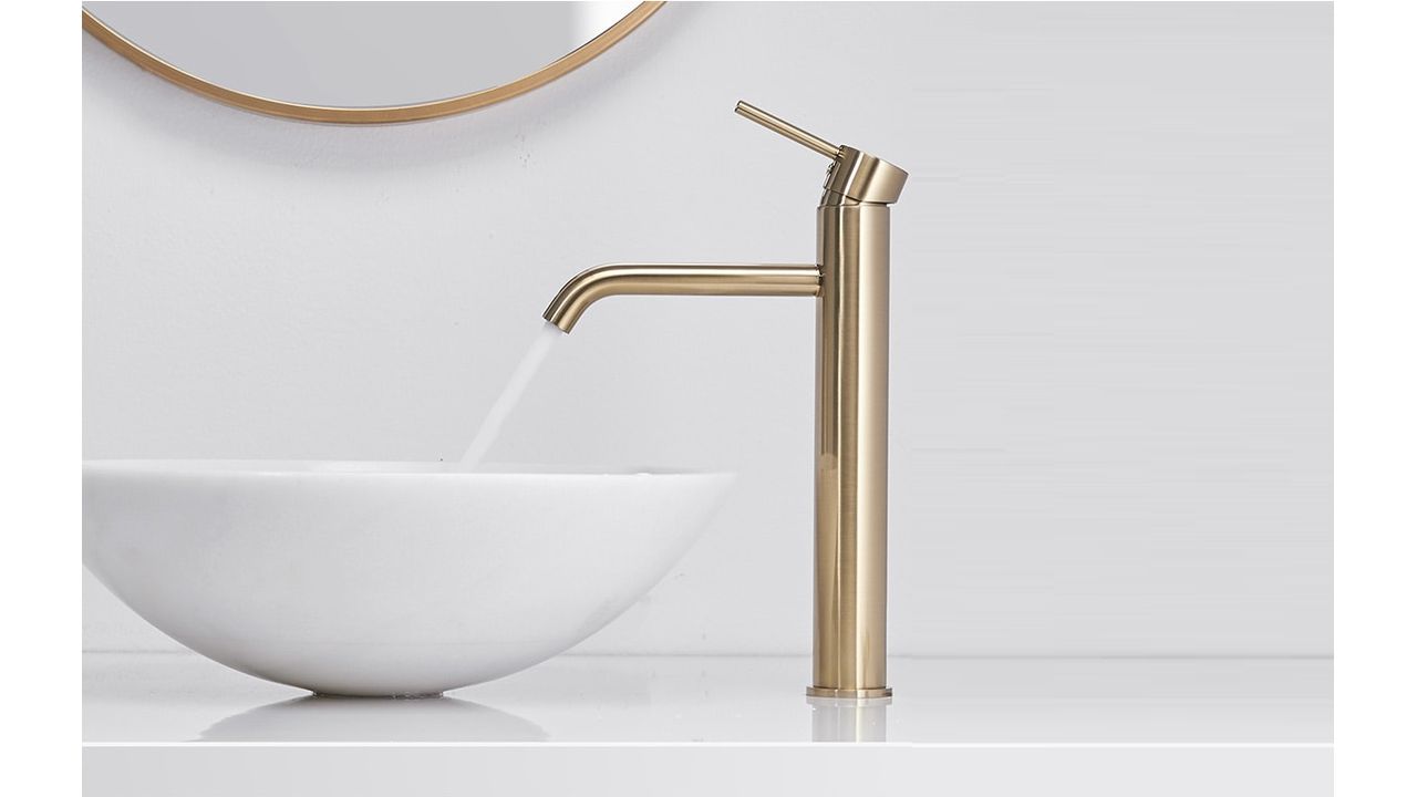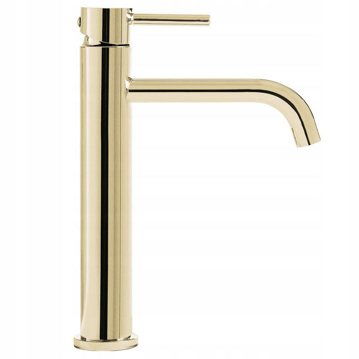 Aukštas praustuvo maišytuvas REA LUNGO, pastatomas ant stalviršio, auksinio blizgesio