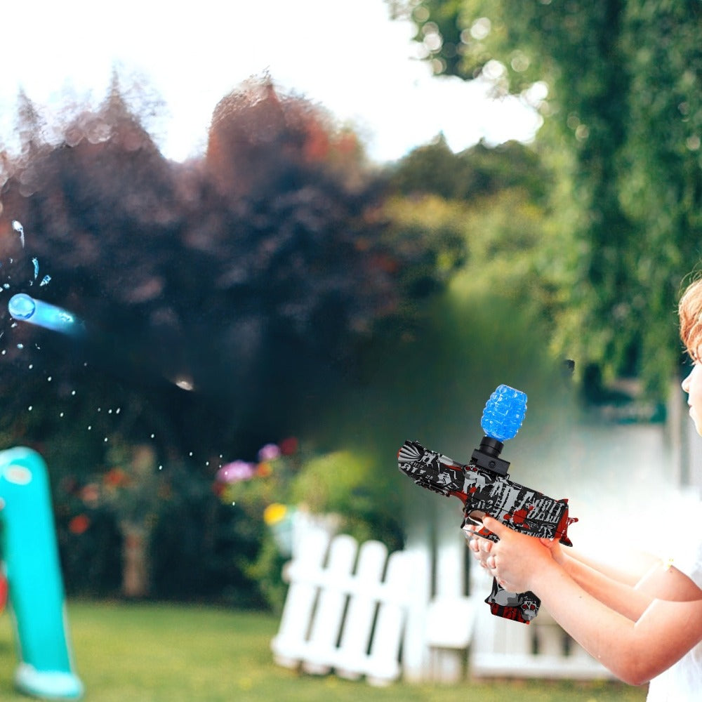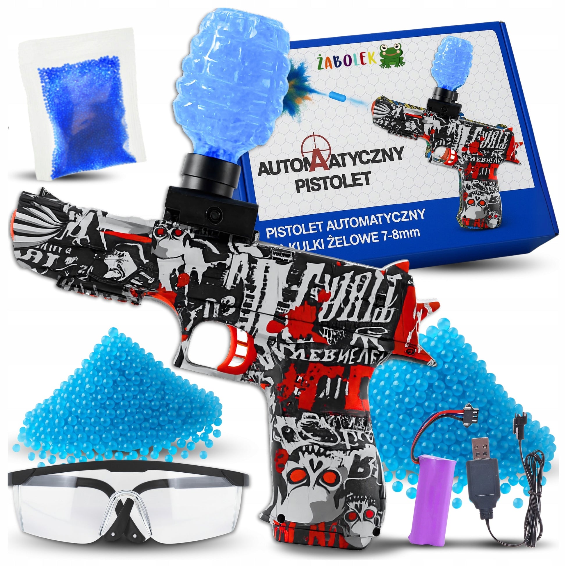 - Pilnas rinkinys: ginklas, 3000 gelinių kamuoliukų, įkraunama 3,7V baterija, USB įkroviklis, apsauginiai akiniai, granatos formos magazinas ir adapteris