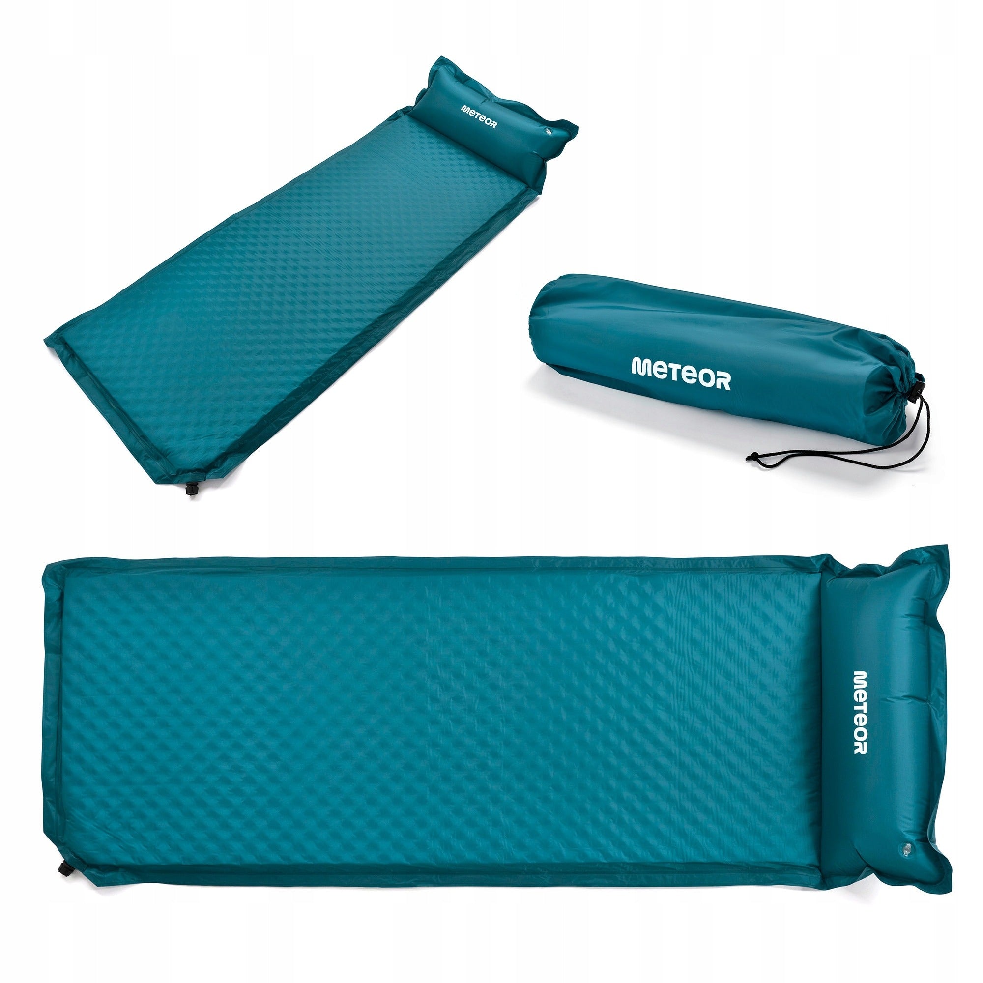 Automatiškai pripučiamas turistinis kilimėlis Meteor 188x66x3,8 cm su pagalvėle jūrinės spalvos stovyklavimui ir kelionėms