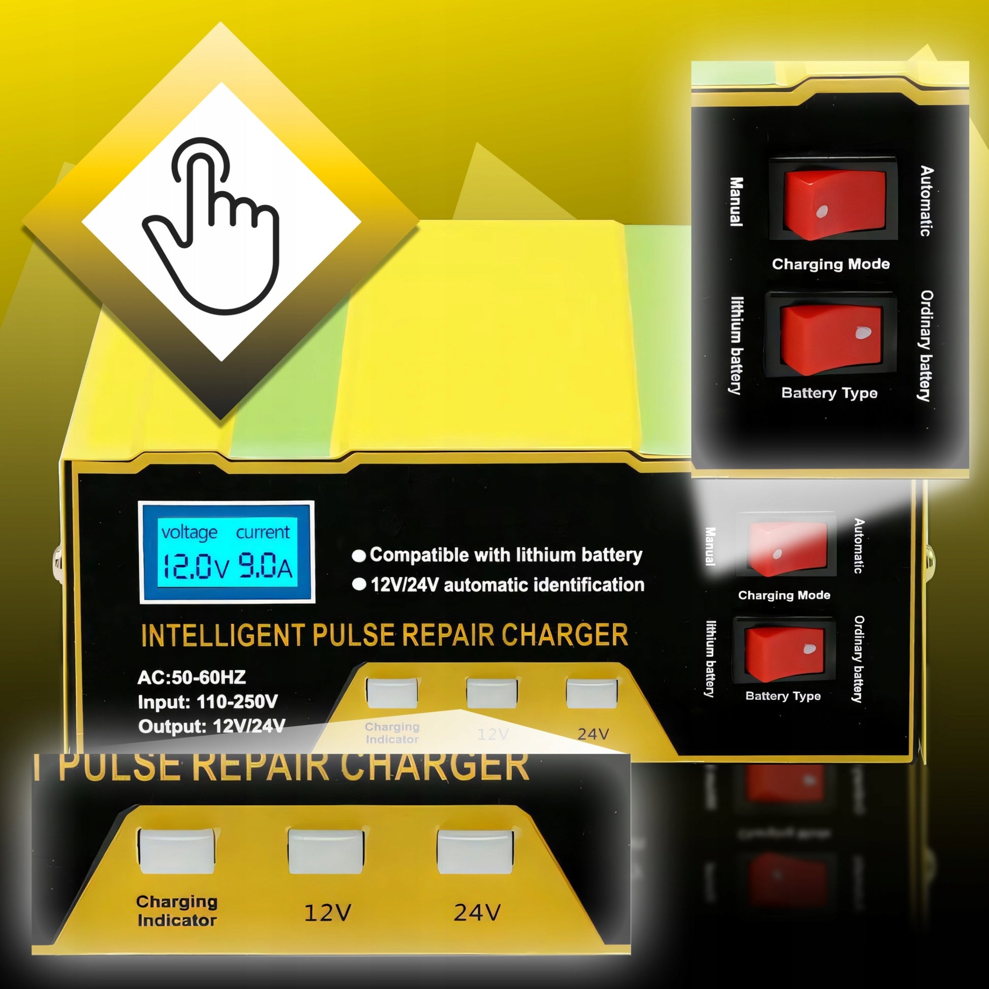 Pristatome naujos kartos automobilinį akumuliatorių įkroviklį, kuris yra nepakeičiamas įrankis kiekvienam vairuotojui. Šis pažangus įrenginys ne tik greitai ir efektyviai įkrauna 12V ir 24V akumuliatorius, bet ir turi unikalią „Pulse Repair“ funkciją, skirtą atnaujinti ir prailginti senesnių akumuliatorių veikimo laiką. Kompaktiškas dizainas, aiškus LED ekranas ir daugybė saugos funkcijų užtikrina patogų bei saugų naudojimą bet kokiomis sąlygomis.