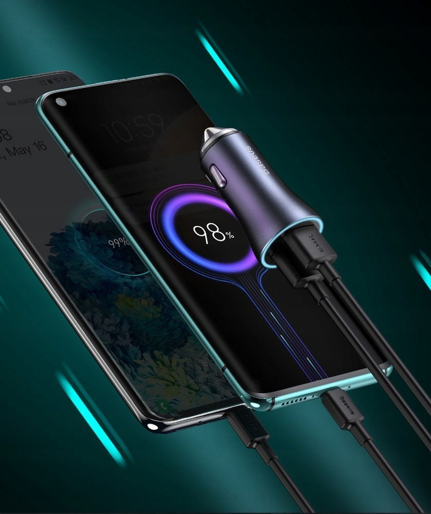Šis „Baseus“ automobilinis įkroviklis ne tik patogus, bet ir itin efektyvus. Jis palaiko daugybę sparčiojo įkrovimo protokolų, tokių kaip Power Delivery (PD), Quick Charge (QC 4+, QC 3.0), SCP (Huawei SuperCharge), FCP (Huawei Fast Charger Protocol) ir AFC (Samsung Adaptive Fast Charging). Tai reiškia, kad Jūsų suderinami įrenginiai bus įkrauti žaibišku greičiu. Pavyzdžiui, daugelis išmaniųjų telefonų baterijos gali būti įkrautos iki 50% vos per 30 minučių, todėl niekada nebūsite atjungti nuo pasaulio. Elegantiškas, pilnai metalinis korpusas ne tik atrodo stilingai automobilio salone, bet ir užtikrina efektyvų šilumos išsklaidymą, apsaugodamas įrenginius nuo perkaitimo.