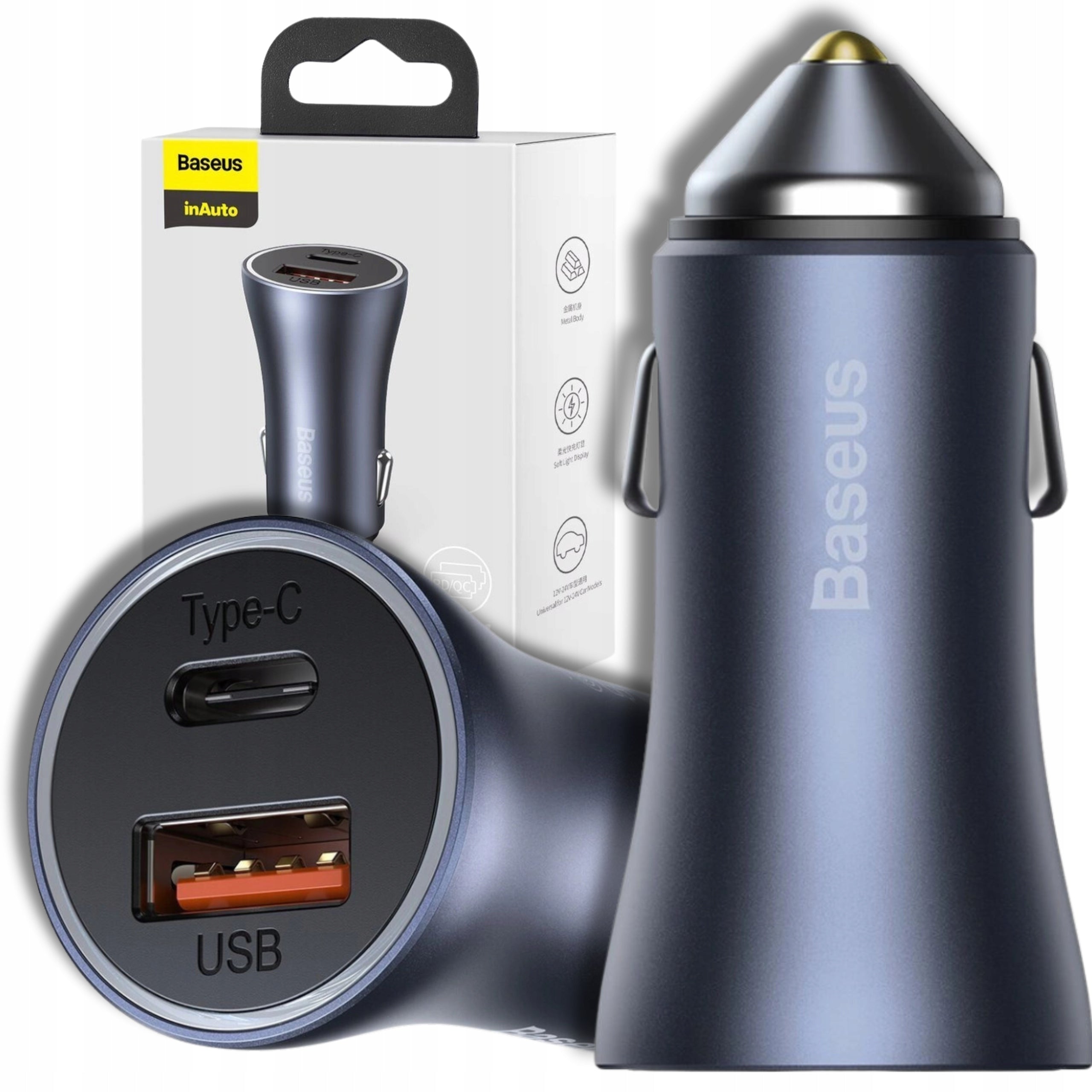 Automobilinis USB-C USB įkroviklis BASEUS 40W PD QC SCP FCP AFC Galingas Greitas