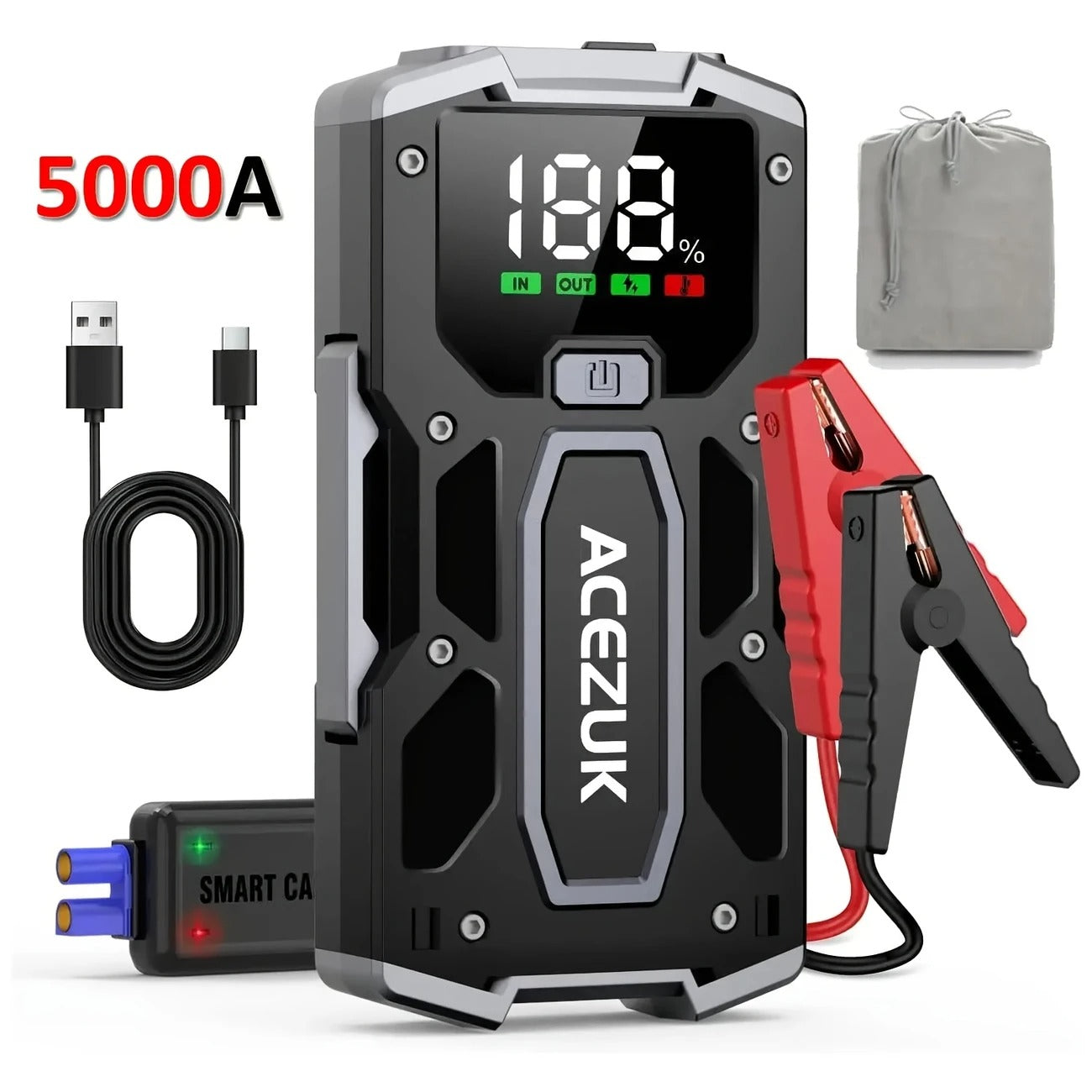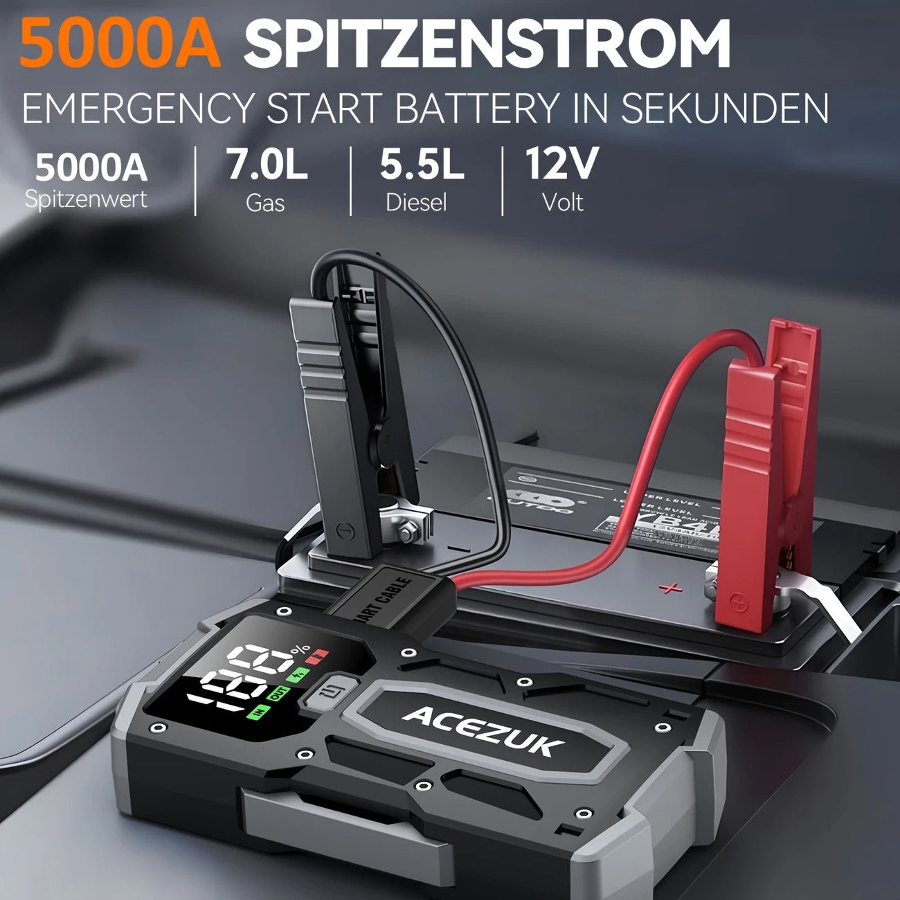 Įsivaizduok – ankstyvas rytas, skubi į darbą ar kelionę, bet automobilis nė necypteli. Baterija mirus. Jokios pagalbos, jokios energijos. Panika. Bet tau pakanka vieno sprendimo – galingo 5000A automobilio užvedėjo, kuris per kelias sekundes vėl įkvėps gyvybės tavo transportui. Be skambučių, be svetimų laidų, be laukimo.