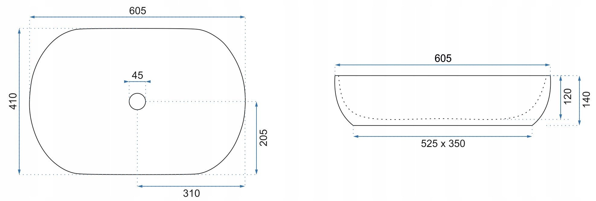 - Funkcionalumas: 60,5 cm ilgio ir 14 cm aukščio praustuvas užtikrina patogų naudojimąsi.
