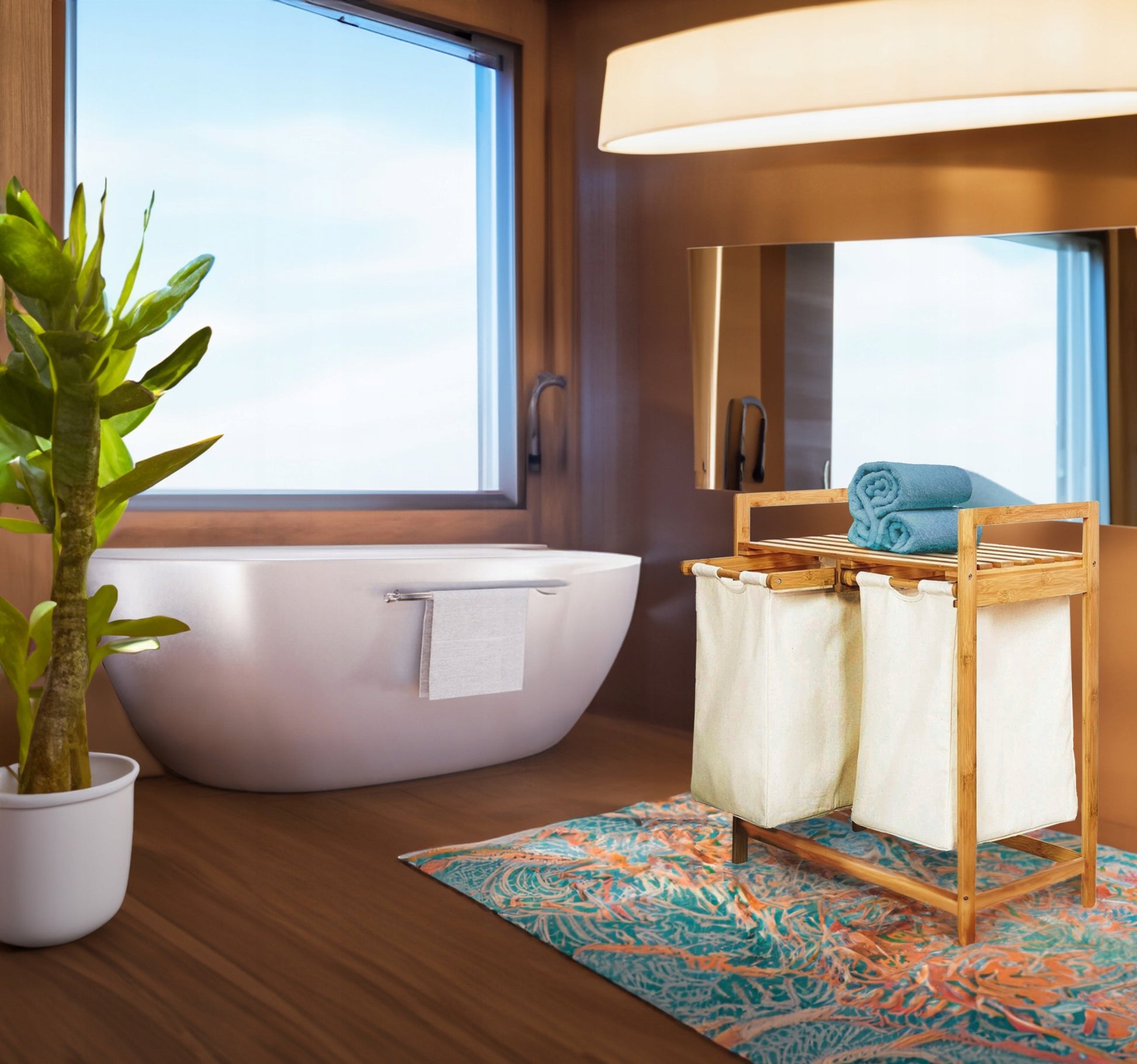 Sukurkite harmonijos ir tvarkos oazę savo namuose su mūsų elegantišku dvikameriu bambuko indu skalbiniams. Šis ne tik funkcionalus, bet ir itin estetiškas baldas puikiai papildys bet kokį interjerą, suteikdamas jam natūralumo ir modernumo dvelksmą. Pagamintas iš aukščiausios kokybės, kruopščiai apdoroto bambuko, šis indas tarnaus Jums ilgus metus, kartu rūpindamasis aplinka. Jo minimalistinis dizainas lengvai dera prie įvairių stilių, o papildoma viršutinė lentynėlė suteikia papildomos vietos Jūsų vonios kambario reikmenims ar dekoratyviniams elementams.