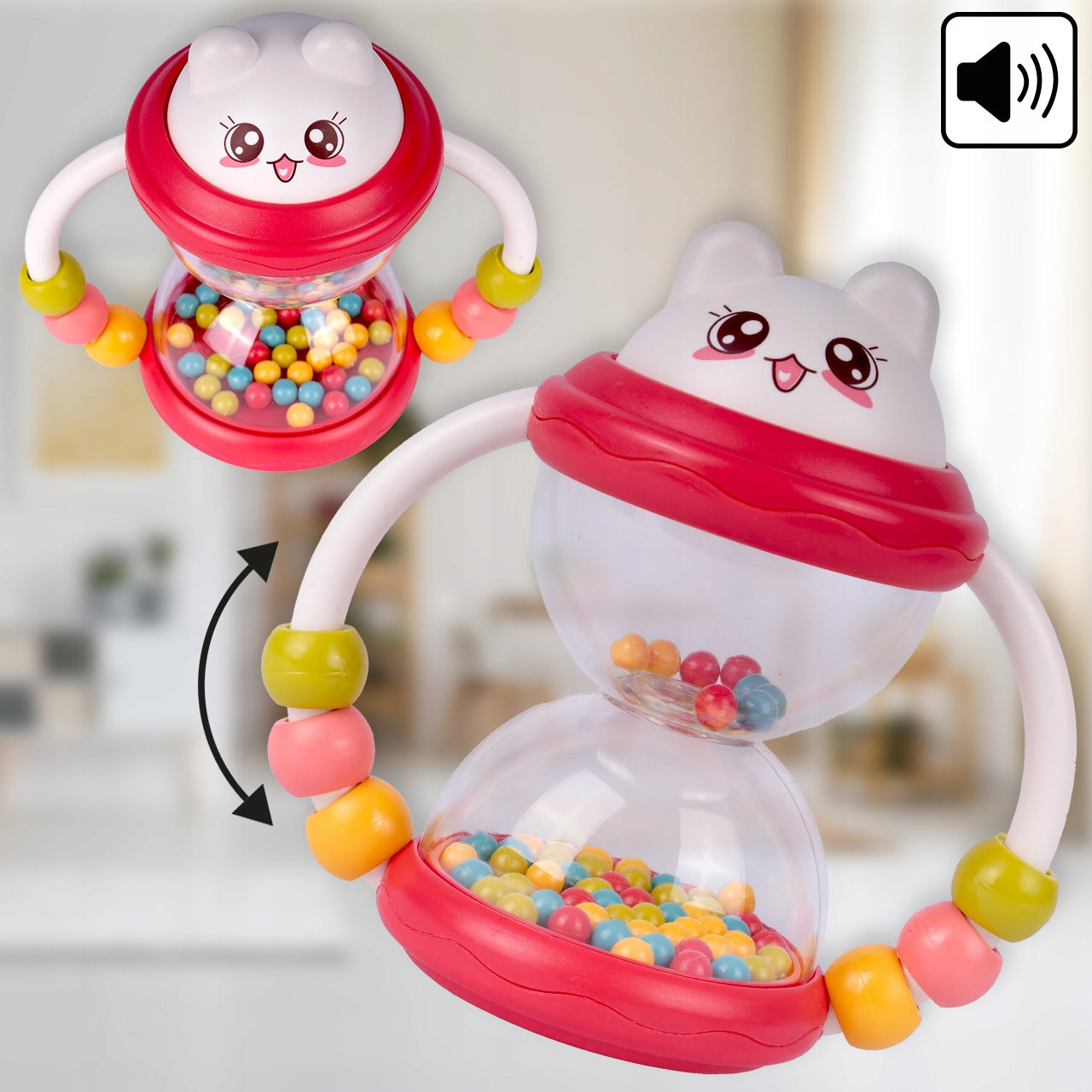 - Grėbliukai: smėlio laikrodis su viduje esančiomis judančiomis granulėmis, tradicinis grėbliukas, automobilio formos grėbliukas.