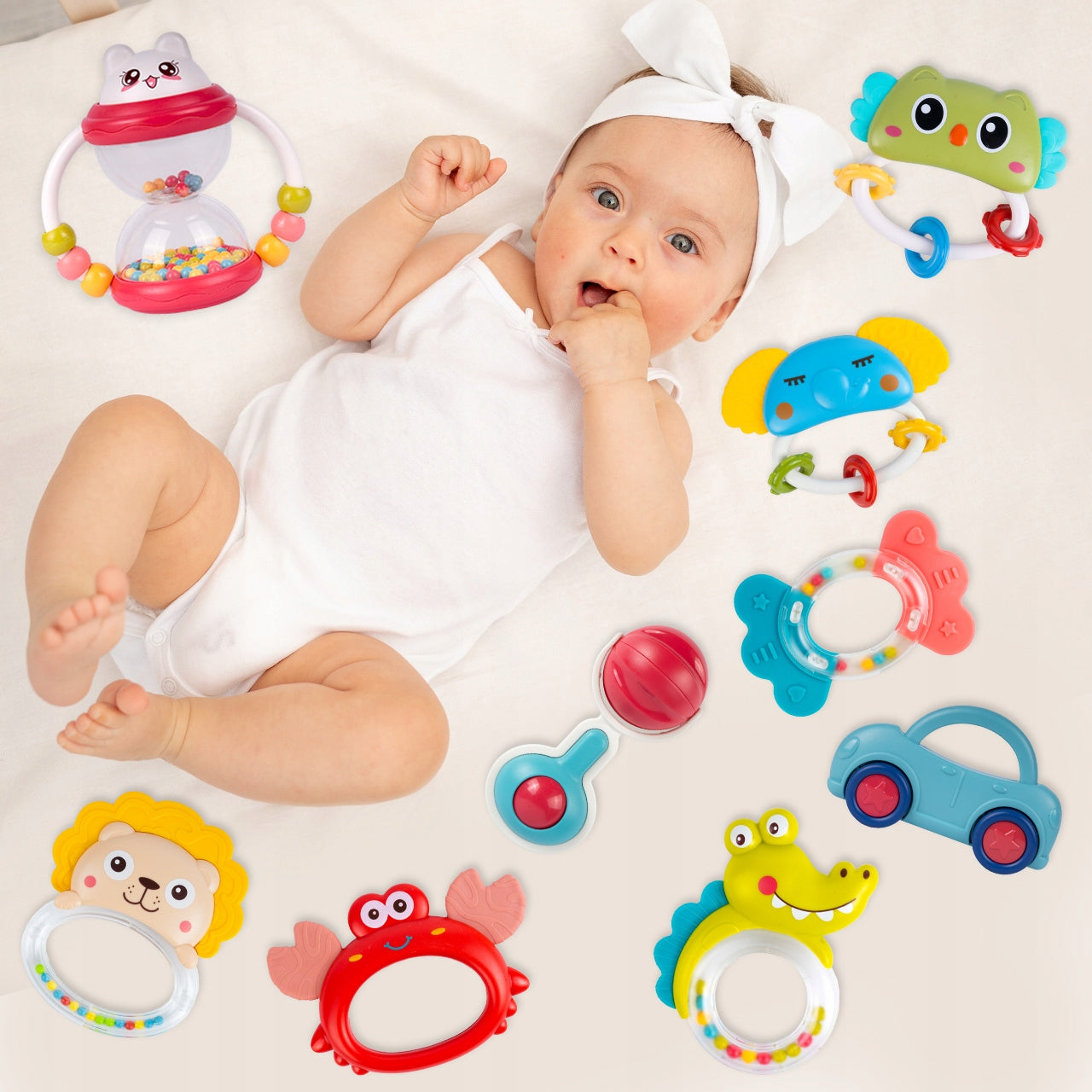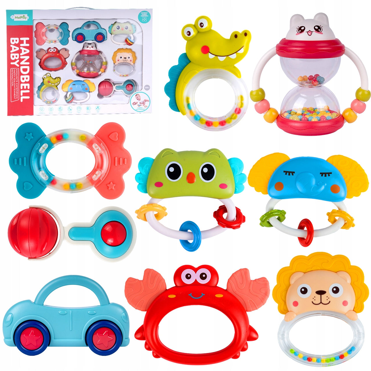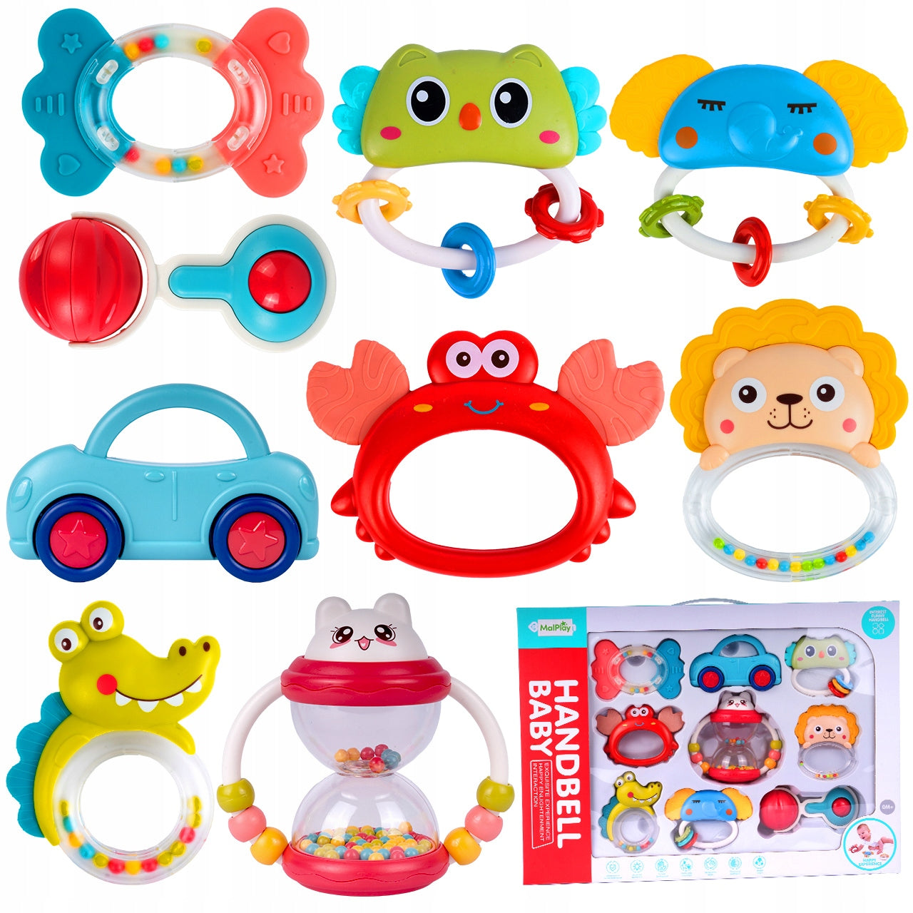Džiaugsmingos Grėbliuko Ir Kramtyklių Gyvūnėlių Kompaktiškas Rinkinys 9 Vnt. Kūdikiams