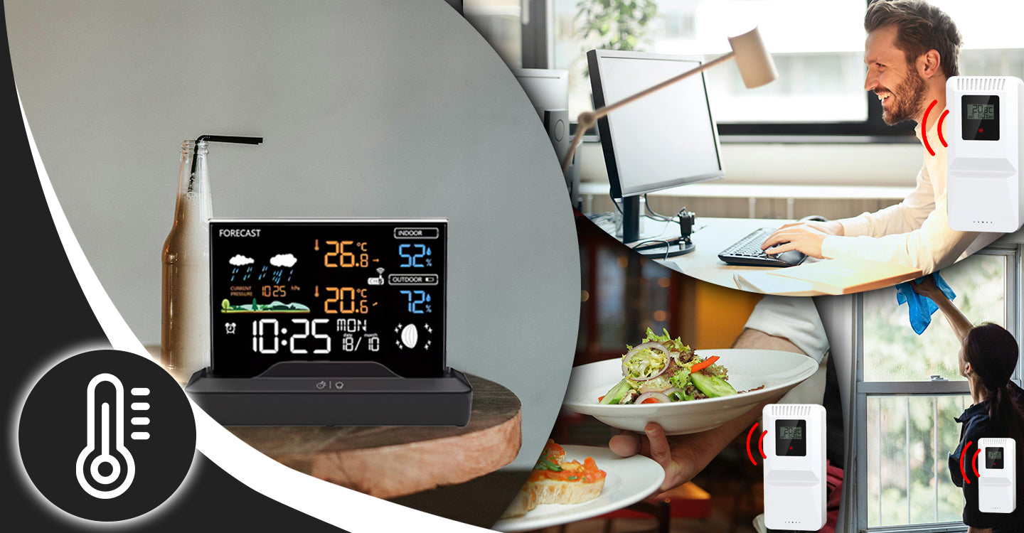 - Papildomų daviklių galimybė: Stebėkite orus keliose vietose vienu metu (iki 3 daviklių).
