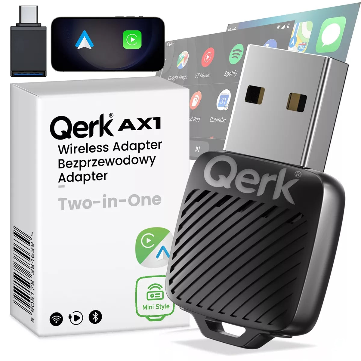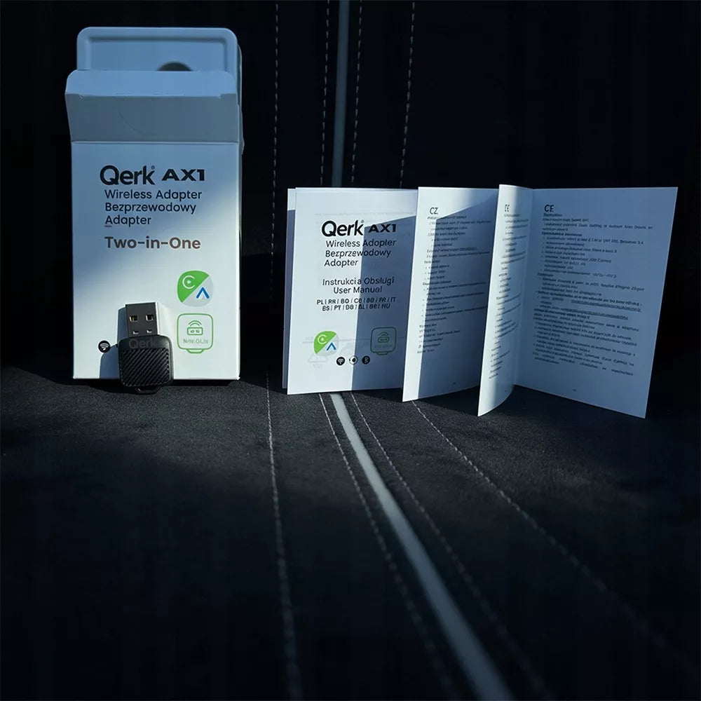 Qerk® AX1 adapteris naudoja naujausias technologijas, kad užtikrintų greitą ir stabilų ryšį. Integruotas „Wi-Fi 5/6 (2.4/5 GHz)“ su 2.4 GHz ir 5 GHz dažnių juostomis leidžia itin sparčiai duomenų perdavai, o „Bluetooth 5.4“ garantuoja greitą pirminį susiejimą ir patikimą ryšio palaikymą. Dėl šių pažangių technologijų, vaizdas, garsas ir komandos perduodamos be pastebimų trikdžių, todėl navigacija, muzikos klausymasis ar pokalbiai telefonu tampa dar malonesni. Adapteris sukurtas taip, kad tiktų bet kuriam automobiliui, turinčiam gamyklinį laidinį "CarPlay" ar "Android Auto" palaikymą, o jo nedidelis dydis leidžia jį lengvai pasiimti su savimi.