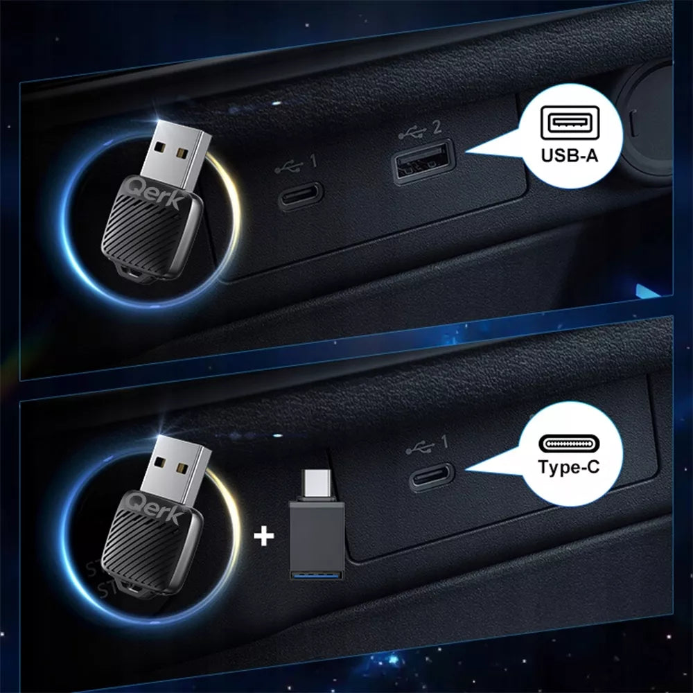 Ar pavargote kiekvieną kartą sėdę į automobilį jungti telefoną laidu? O gal jūsų senasis belaidis sprendimas dažnai praranda ryšį? Qerk® AX1 yra modernizacija, kuri realiai išsprendžia kasdienio telefono prijungimo laidu problemą. Šis kompaktiškas 2-in-1 adapteris paverčia jūsų automobilio laidinį "CarPlay" ar "Android Auto" į patogią belaidę versiją. Tiesiog paleiskite automobilį ir sistema automatiškai prisijungs – nereikės jokių papildomų programėlių ar sudėtingų nustatymų. Jo dėka galėsite mėgautis navigacija, muzika ir skambučiais be jokių laidų, o tai suteikia išskirtinio patogumo vairuojant.