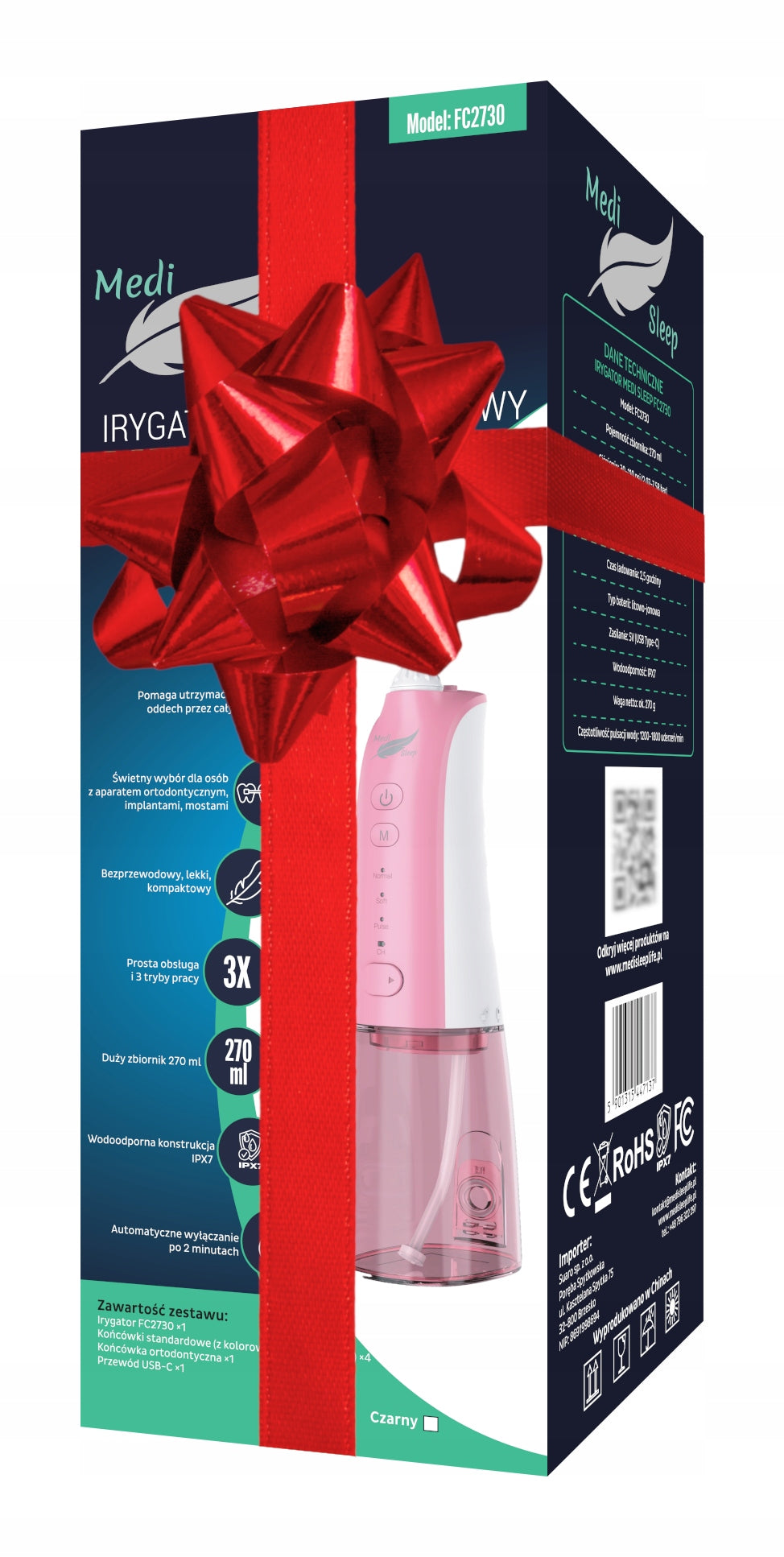Belaidis pulsacinis dantų irigatorius, 4 režimai, 5 antgaliai
