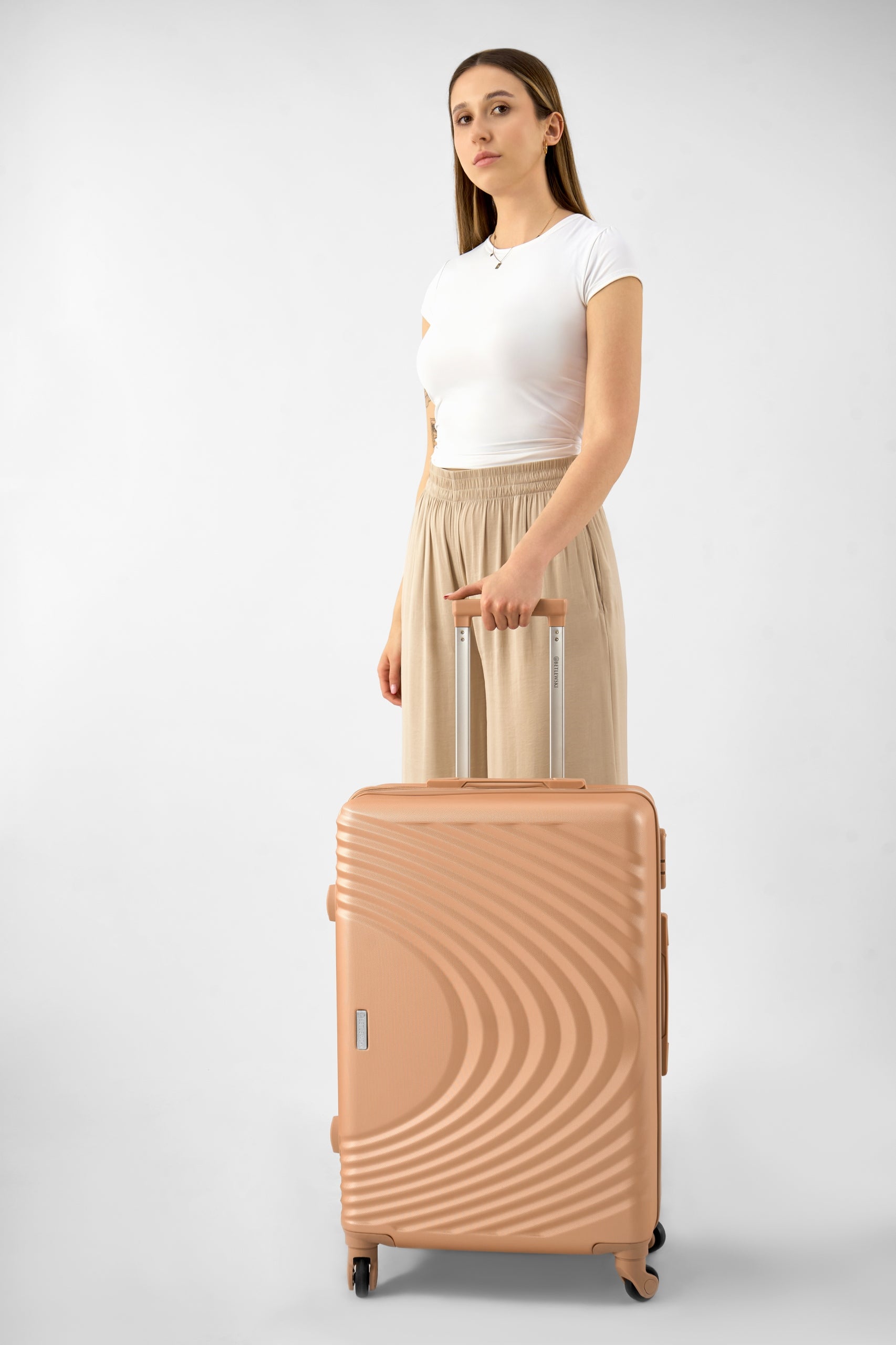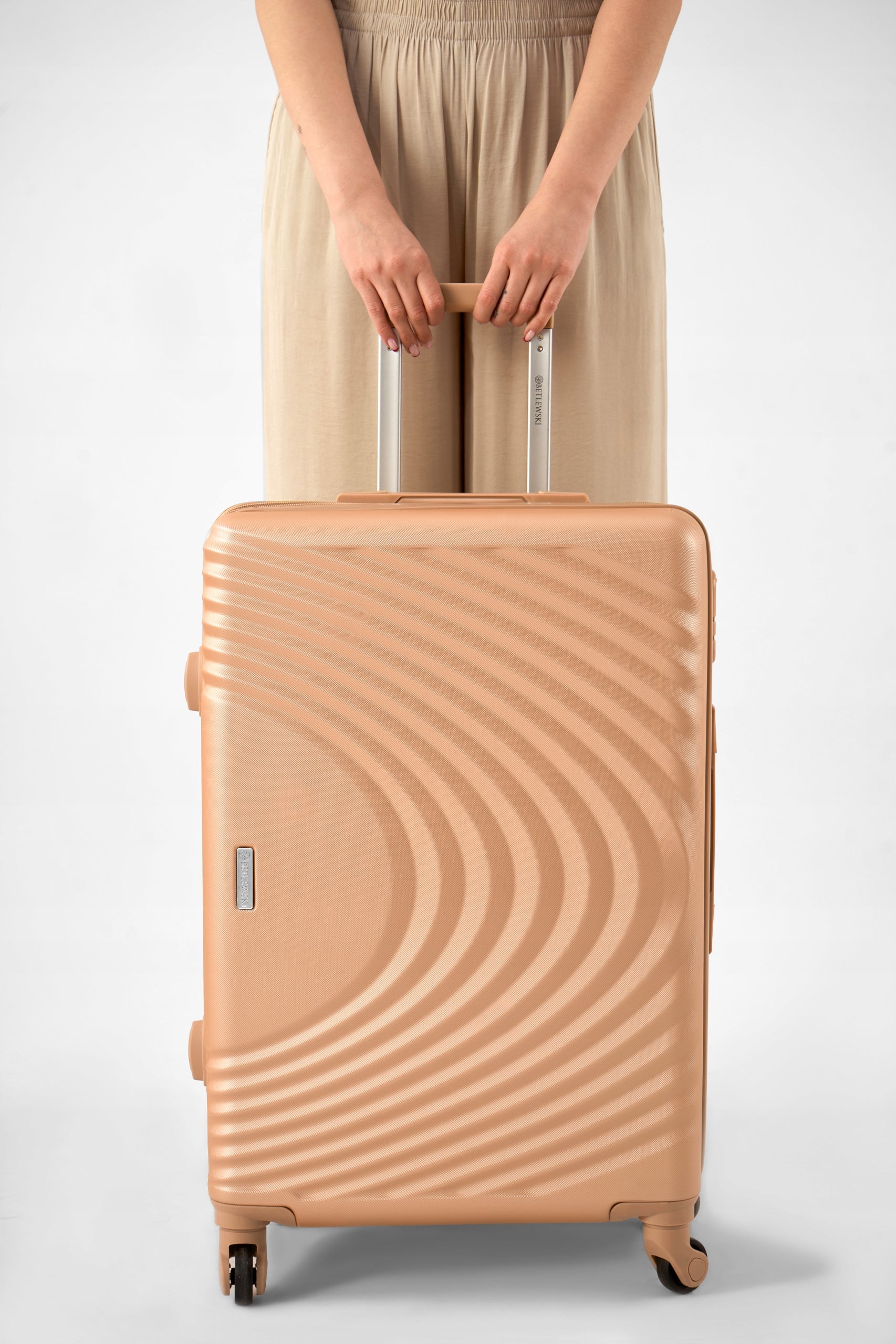 Keliavimas su „Betlewski®“ lagaminu yra tikras malonumas. Jo 4 ypač tvirti, 360 laipsnių kampu besisukantys ratukai užtikrina sklandų ir lengvą manevravimą bet kokiu paviršiumi, ar tai būtų oro uosto grindys, ar miesto gatvės. Teleskopinė rankena reguliuojama, todėl prisitaikys prie jūsų ūgio, užtikrindama ergonomišką ir patogią kelionę. Lagaminas taip pat turi dvi tvirtas rankenas – viršuje ir šone – leidžiančias patogiai pakelti ir nešti lagaminą tiek vertikaliai, tiek horizontaliai. Be to, lagamino šonuose yra apsauginės kojelės, kurios neleidžia jam tiesiogiai liestis su nešvariu ar drėgnu paviršiumi.