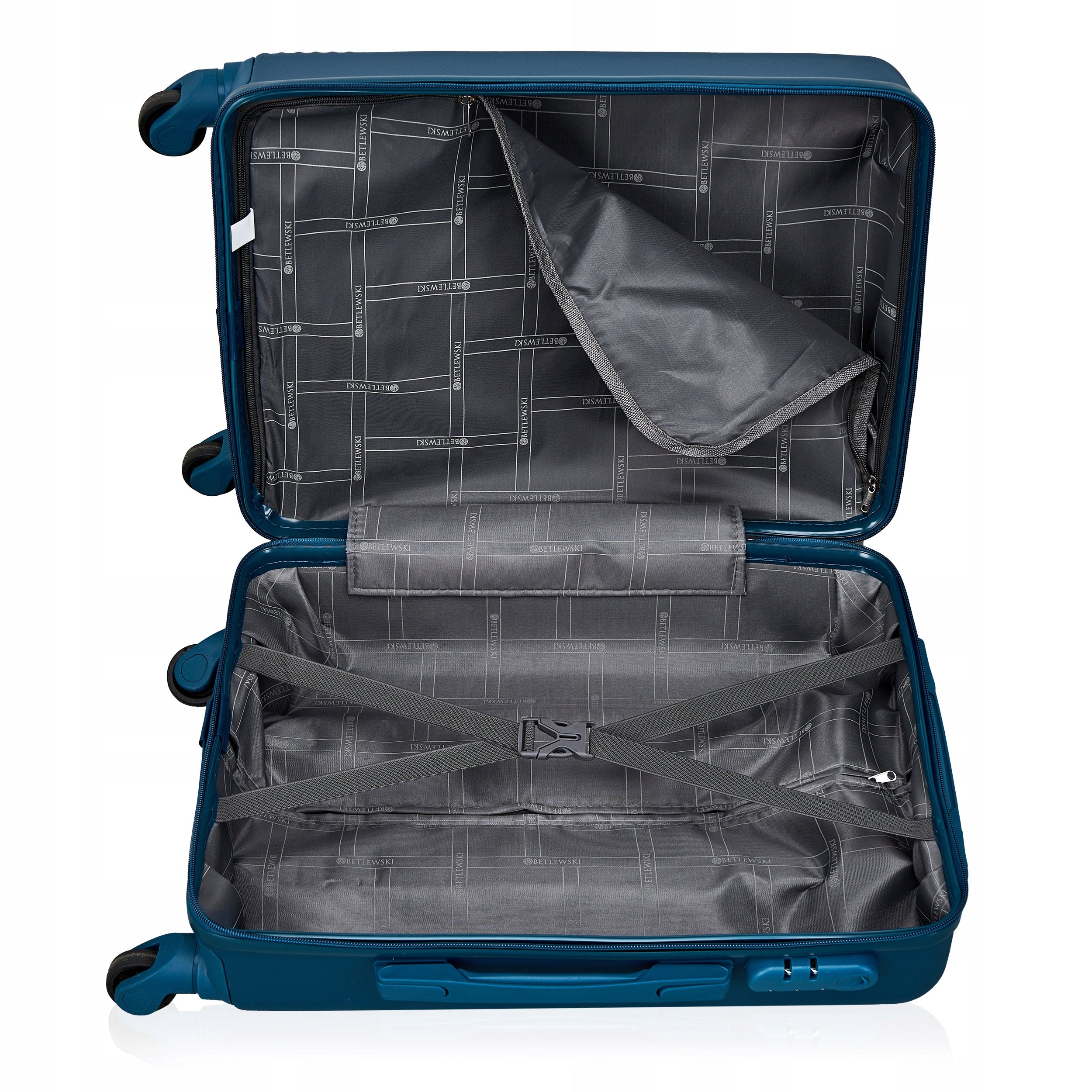 Nors šis lagaminas atitinka daugumos oro linijų reikalavimus kabininiam bagažui (matmenys: 55x38x25 cm), jis pasižymi įspūdinga 38 litrų talpa. Tai leidžia sutalpinti viską, ko reikia trumpai kelionei, neaukojant stiliaus ar patogumo. Vidinis pamušalas, pagamintas iš tvirto poliesterio su Betlewski® logotipu, yra ne tik estetiškas, bet ir patvarus. Pagrindinis skyrius yra padalintas į dvi dalis, užsegamas užtrauktuku, todėl galėsite tvarkingai susidėti savo daiktus.