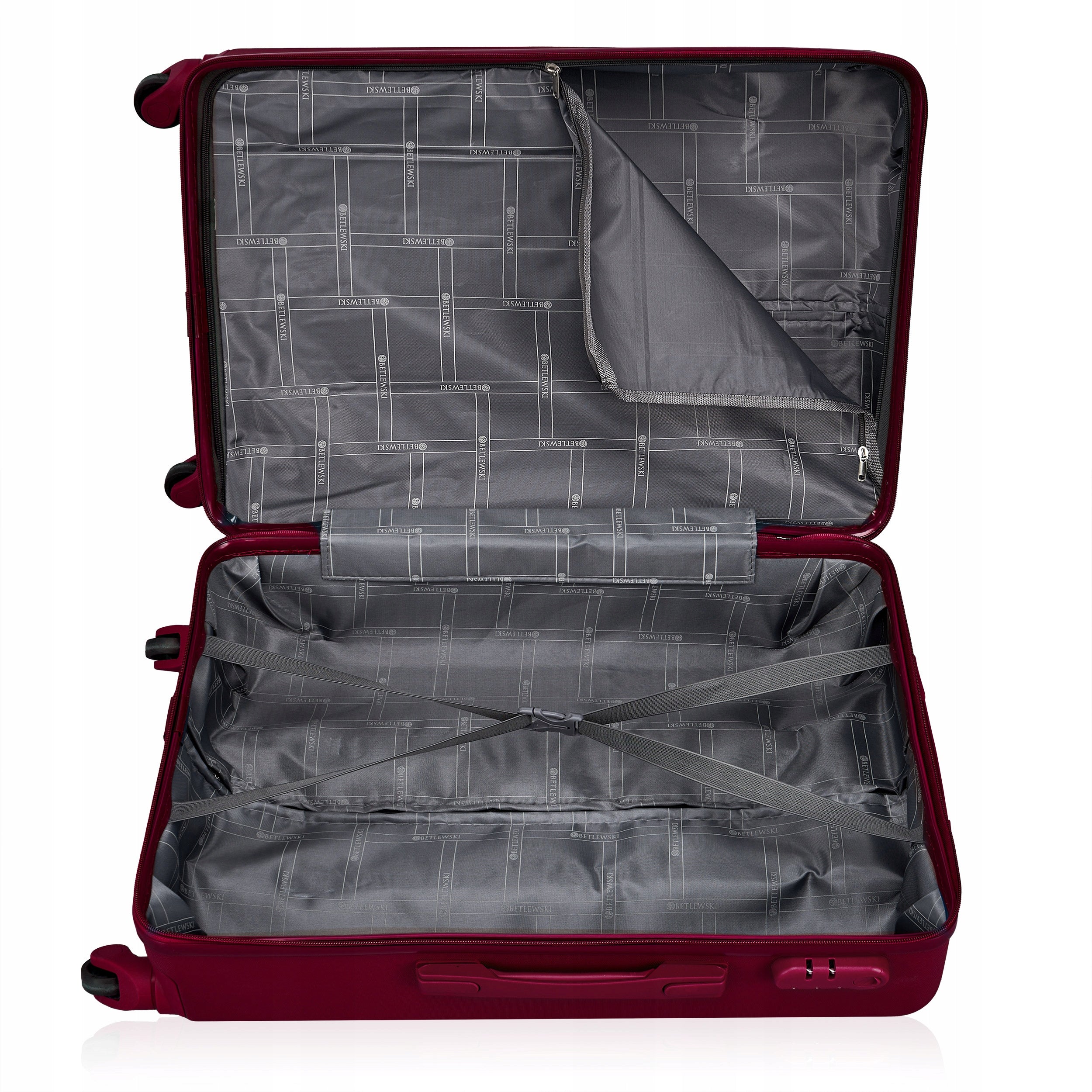 Atidarius šį Betlewski lagaminą, Jūs iš karto pastebėsite jo apgalvotą vidinę struktūrą. Lagaminas turi tvarkingą, juodos spalvos poliesterio pamušalą su subtiliu Betlewski logotipu. Pagrindinė didelė daiktų saugojimo erdvė yra padalinta į dvi dalis užtrauktuku užsegamos pertvaros. Siekiant maksimaliai apsaugoti Jūsų drabužius ir daiktus nuo išsisklaidymo kelionės metu, viduje yra elastingi, tvirtinami diržai. Ši sumani organizacija leidžia sutalpinti apie 63 litrus daiktų, kas yra optimalu vidutinio dydžio kelionei.