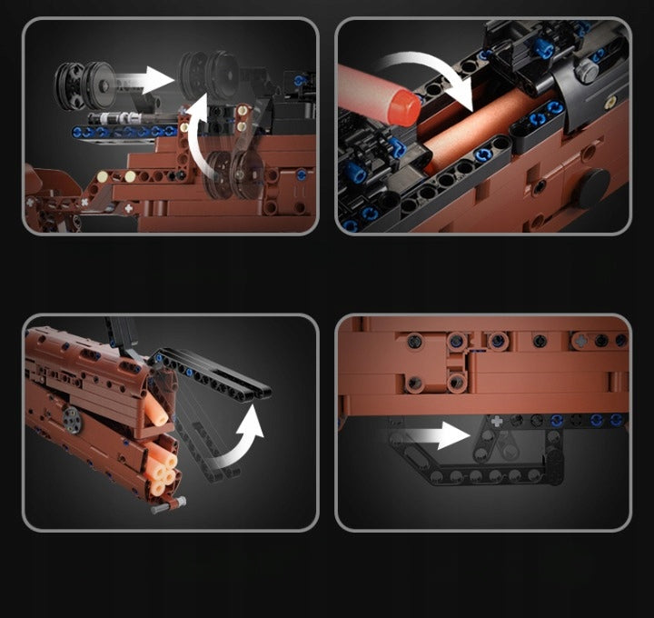 Šis CADA kaladėlių rinkinys yra sukurtas atkartoti ikoniškąjį 98K karabiną, kuris buvo naudojamas per daugelį istorinių įvykių. Kiekvienas iš 653 elementų yra kruopščiai suprojektuotas, kad užtikrintų tvirtumą ir tikslumą konstravimo metu. Surinktas modelis yra ne tik stabilus, bet ir funkcionalus – jame yra judančių dalių, kurios imituoja tikro ginklo veikimą, bei dirželis, leidžiantis patogiai jį nešioti. Tai puiki galimybė ne tik gerai praleisti laiką, bet ir sužinoti daugiau apie ginklo mechanizmus ir istoriją per praktinį konstravimą.