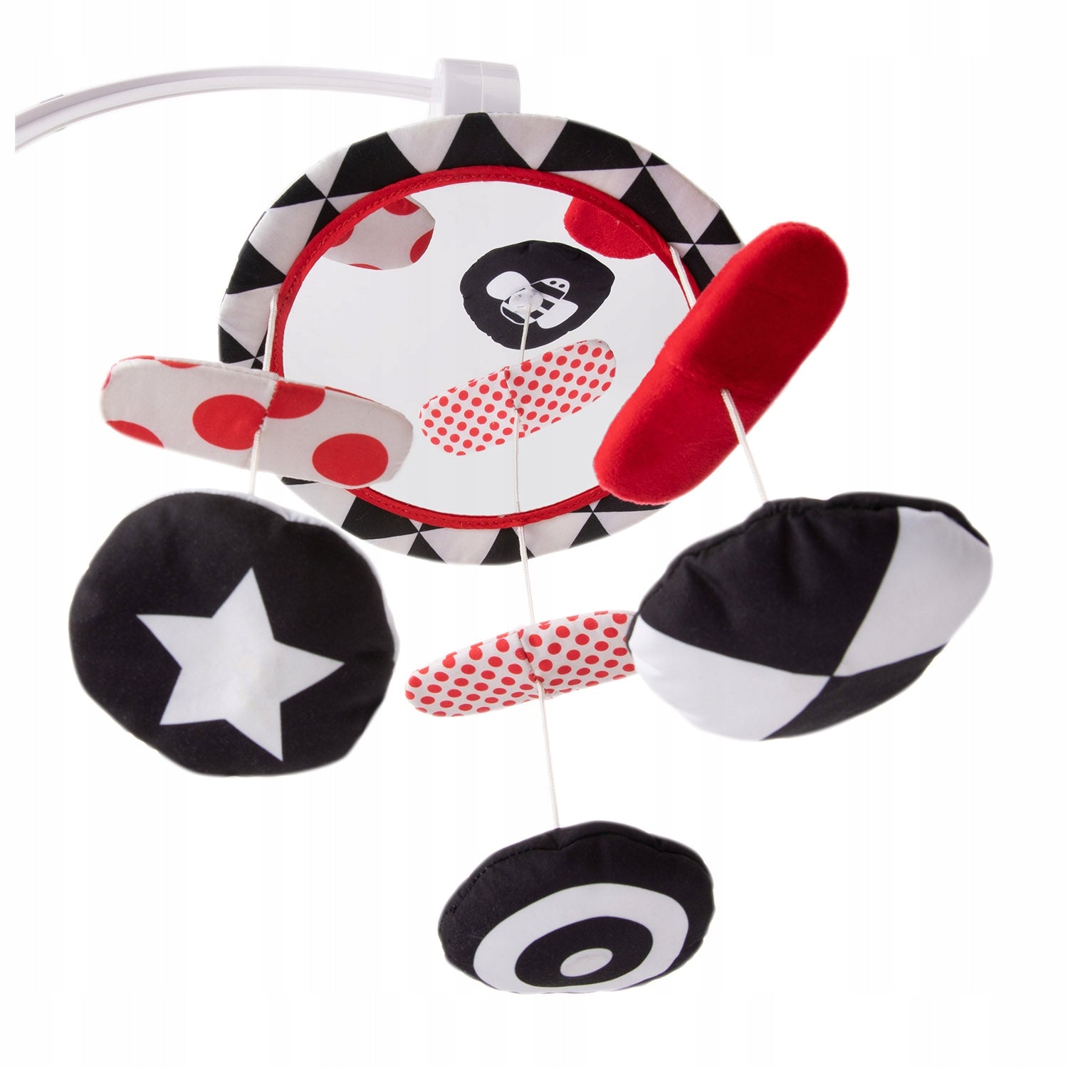 Nuostabus regėjimo lavinimas prasideda nuo pirmųjų akimirkų. Ši karuselė naudoja stiprius kontrastus – raudoną ir juodą spalvas, kurios yra lengviausiai atpažįstamos ir stimuliuojančios naujagimio akis. Ryškūs geometriniai raštai ir dvipusiai, apverčiami elementai leidžia pritaikyti karuselės dizainą pagal vaiko vystymosi stadiją. Pradžioje tai ryškūs, atpažįstami kontrastai, o vėliau, kūdikiui augant (po 6 mėnesių), vaizdai keičiasi į mielas figūrėles – meškiuką, bitutę, letenėlę, kurios dar labiau skatina smalsumą ir norą tyrinėti.