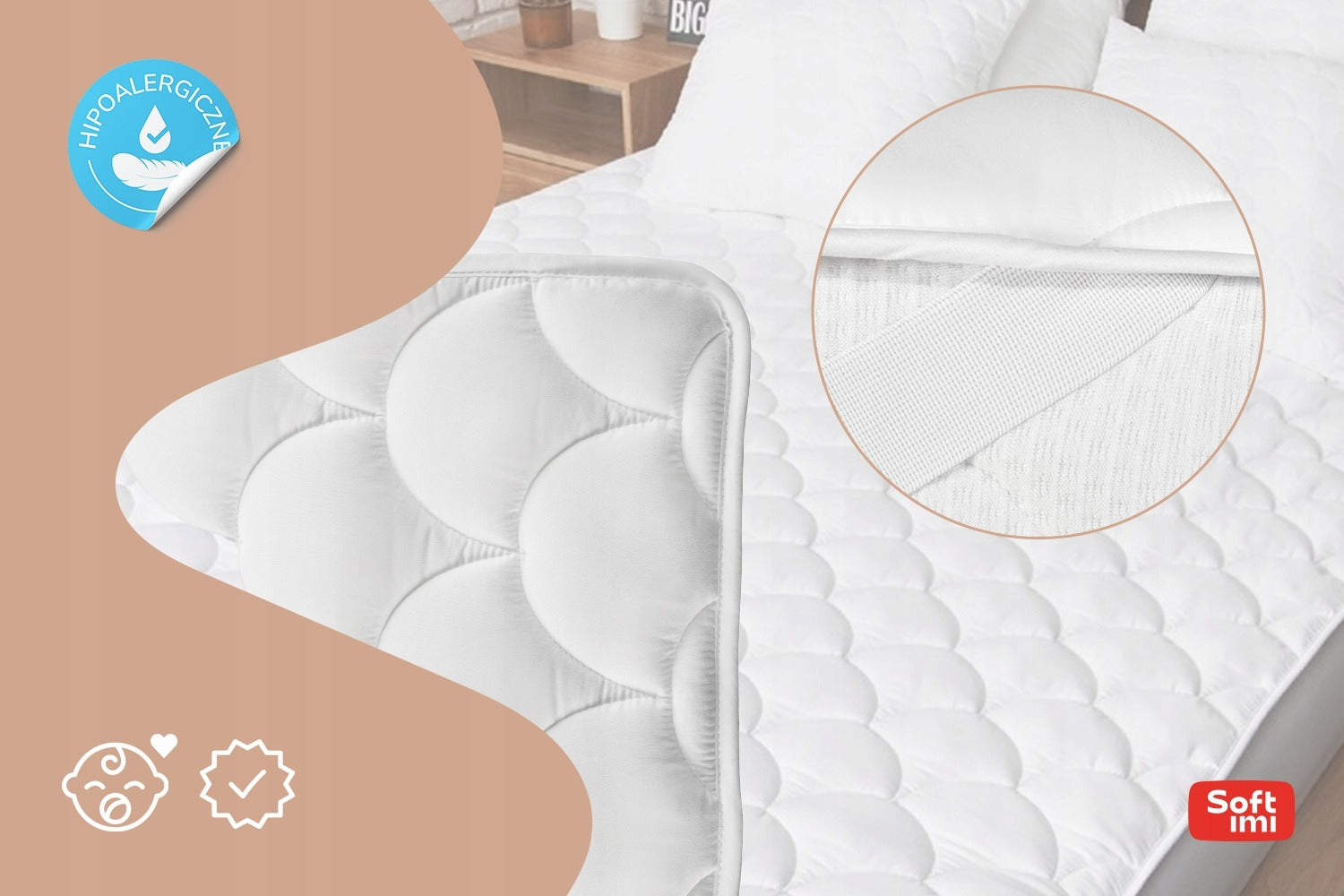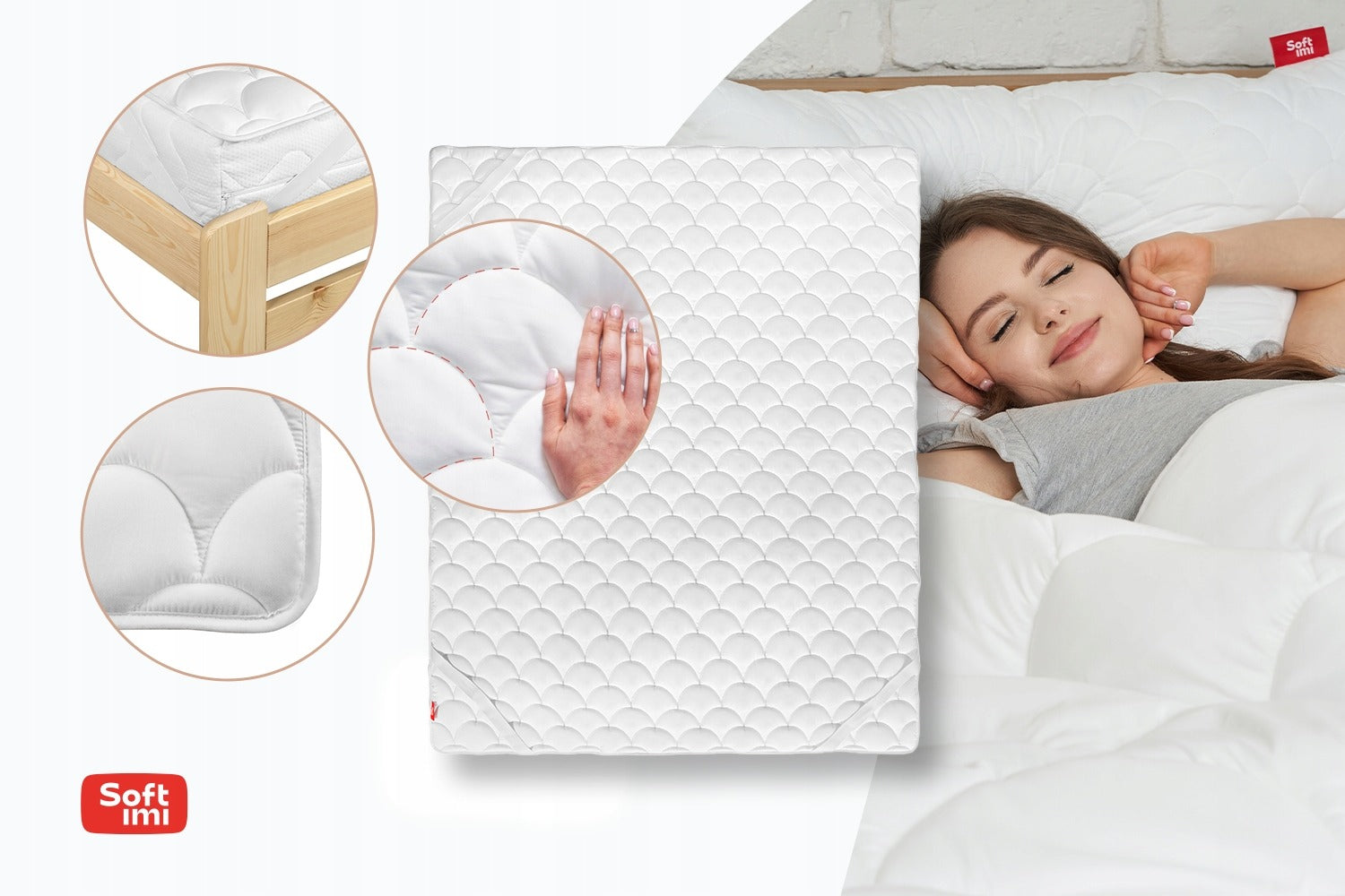 Čiužinio užtiesalas 160x200 Softimi – tai aukščiausios kokybės antialerginis topperis, sukurtas suteikti maksimalų miego komfortą ir apsaugoti jūsų čiužinį nuo nusidėvėjimo. Šis užtiesalas ne tik išlygina nelygumus, bet ir paverčia bet kurį čiužinį minkštesniu bei patogesniu, todėl ryte pabusite pailsėję, be nugaros įtampos ir su maloniu lengvumo jausmu. Softimi topperis pasiūtas Lenkijoje iš aukštos kokybės mikrofibros ir pripildytas HCS silikonizuotu pluoštu 300 g/m² tankio, kuris pasižymi išskirtiniu elastingumu ir oro pralaidumu.