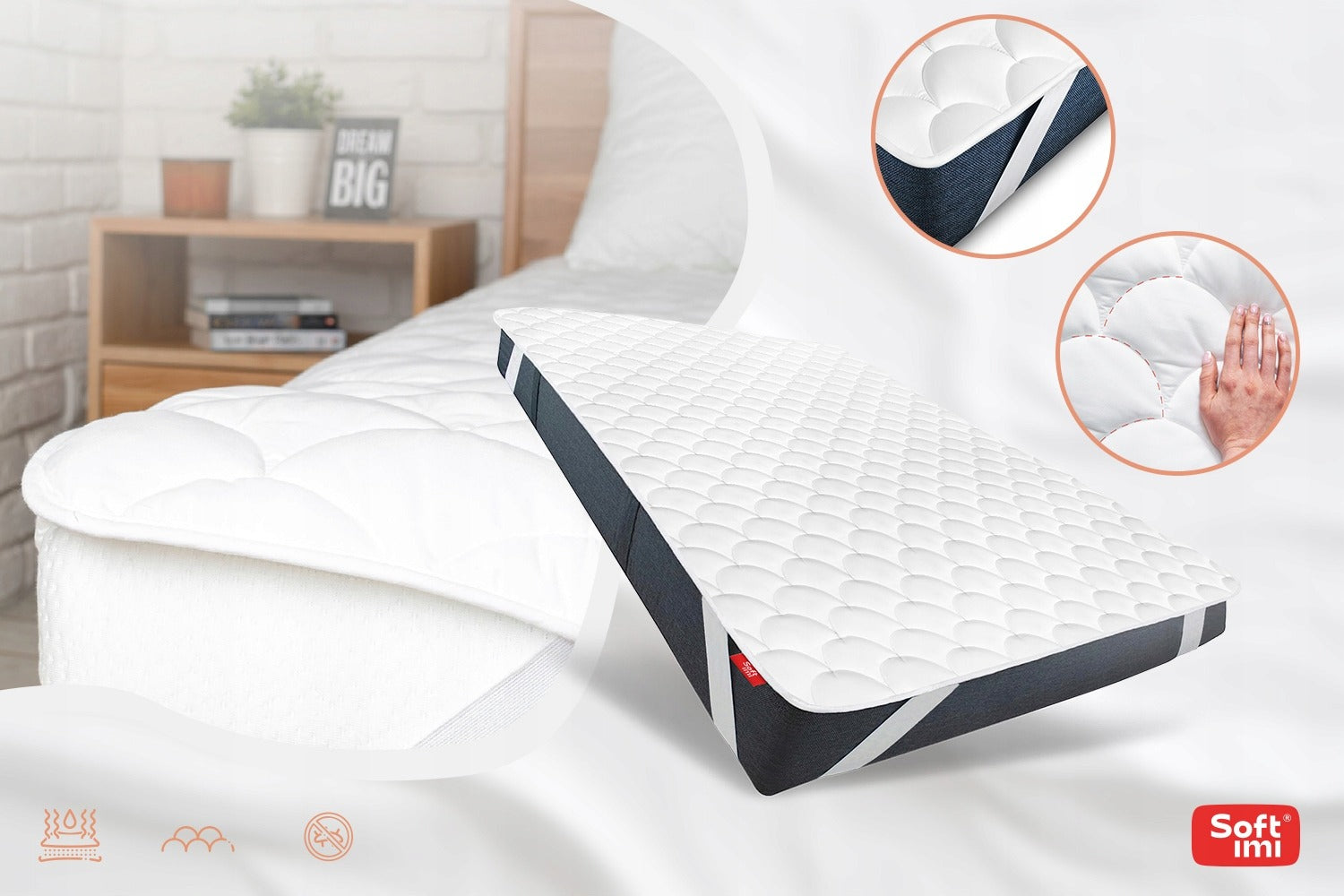 Dėl savo 2–3 cm storio jis idealiai tinka tiems, kurie nori pagerinti senesnio čiužinio patogumą arba suteikti papildomo minkštumo naujam čiužiniui. Kiekvienas Softimi užtiesalas siuvamas itin kruopščiai, laikantis aukštų kokybės standartų, todėl yra visiškai saugus vaikams ir alergiškiems žmonėms. Audinys – hipoalerginė mikrofibra, švelni odai ir maloni liesti. Užpildas nesugeria kvapų, neslūgsta ir išlaiko formą daugelį metų.