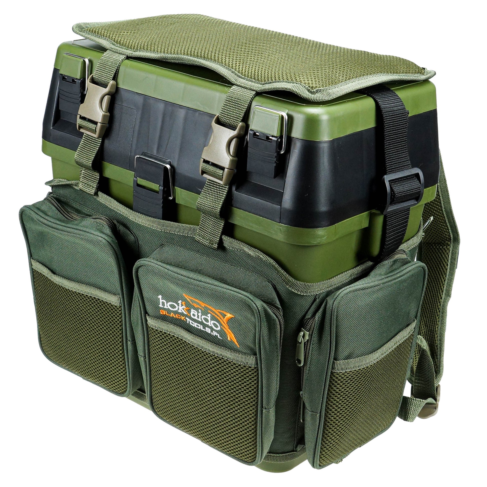 HOKKAIDO 3-in-1 rinkinys apima ne tik dėžutę, bet ir patogią sėdimąją dalį bei papildomas laikymo vietas. Minkšta, bet tvirta putplasčio pagalvėlė ant sėdimosios dalies užtikrina komfortą net ir ilgų žvejybos sesijų metu. Be pagrindinės dėžutės, produktas turi dvi priekines kišenes su užtrauktukais, talpią galinę kišenę bei šonines kišenes su užtrauktukais. Atsegamas raištis leidžia greitai pasiekti dažniausiai naudojamus daiktus, pavyzdžiui, įrankius ar papildomą masalą.