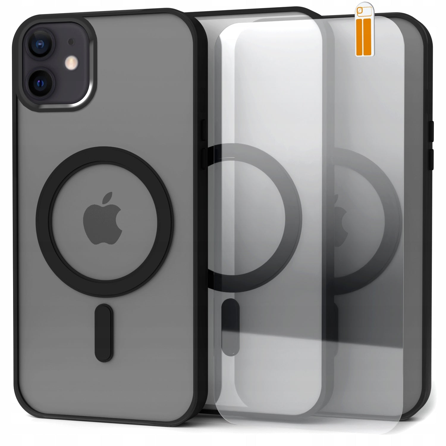 Dėklas Apple iPhone 12 / 12 Pro (Magsafe, Matinės juodos spalvos) + 9H grūdintas stiklas