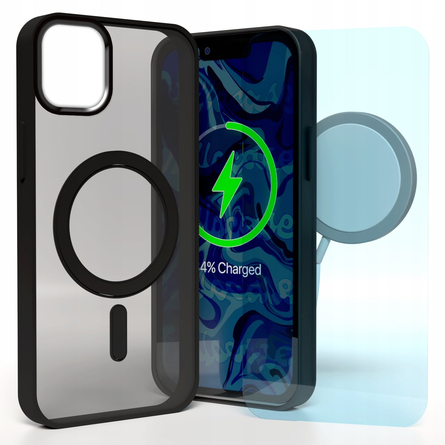 - Magsafe suderinamas juodas matinis dėklas, skirtas Apple iPhone 12 / 12 Pro