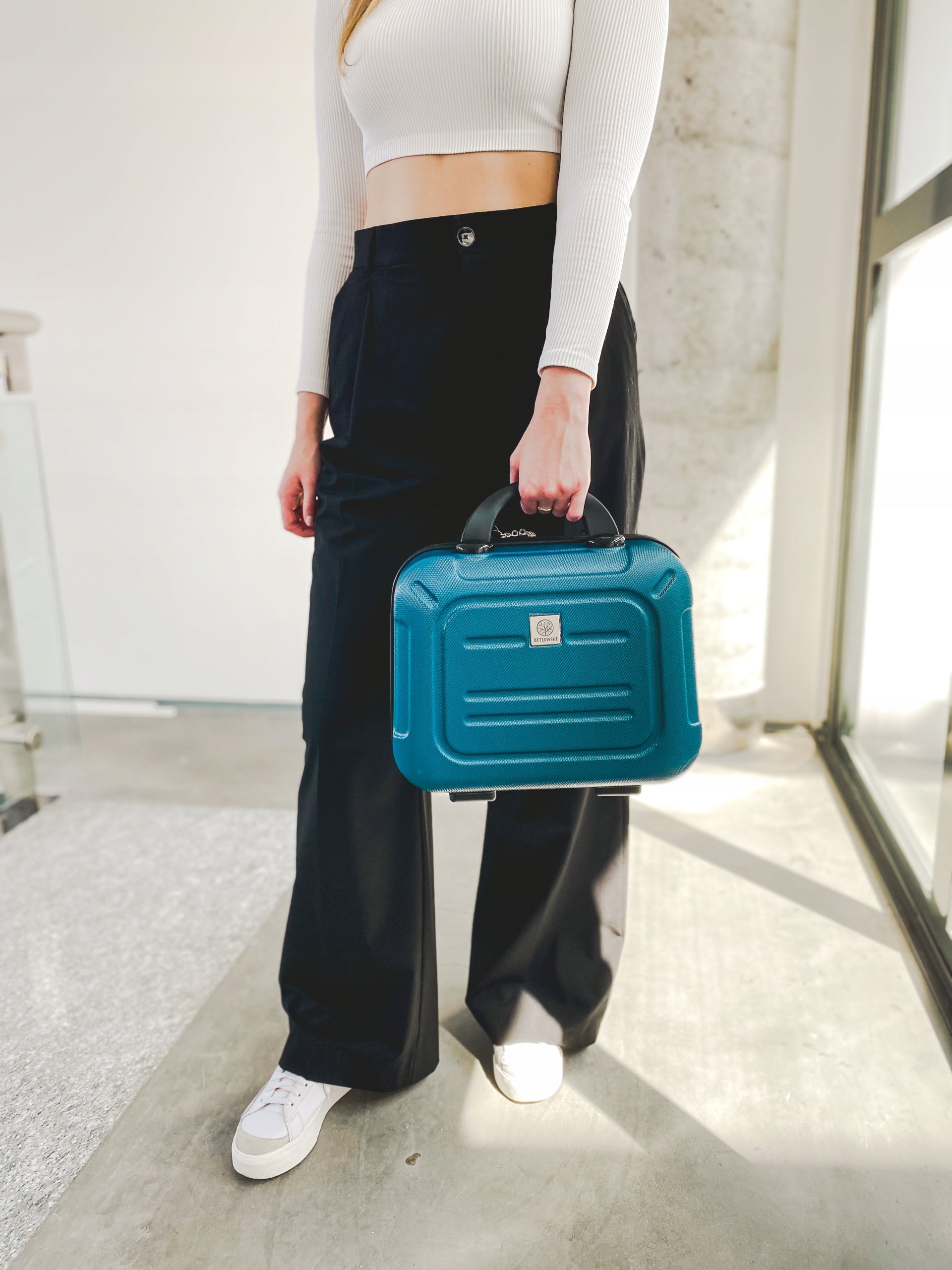 Ši kosmetinė pasižymi apgalvota vidine struktūra, kuri leis Jums tvarkingai susidėti visus reikalingus daiktus. Ji susideda iš dviejų erdvių skyrių, atskirtų užtrauktuku užsegama pertvara. Tai leidžia efektyviai atskirti skirtingas priemones ir užtikrina, kad viskas liks savo vietose net ir judant. Dėl savo kompaktiškų matmenų ir tvirtų atraminių kojelių, ji gali būti naudojama ir kaip rankinis bagažas lėktuve. Gilumas 18 cm, plotis 33 cm ir aukštis 25,5 cm suteikia pakankamai erdvės, kad sutalpintumėte visus Jūsų grožio ir higienos reikmenis.
