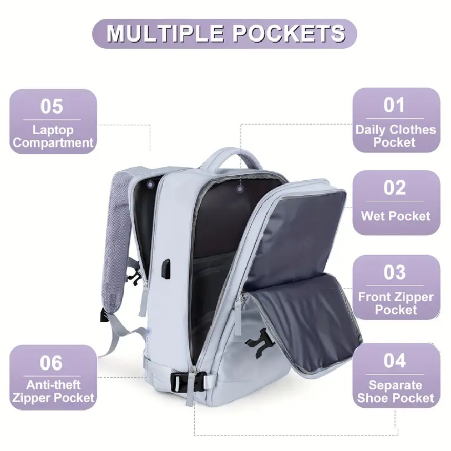Ši didelės talpos kelioninė kuprinė yra puikus pasirinkimas tiek ilgoms kelionėms, tiek kasdieniam naudojimui, kai reikia daugiau vietos ir patogumo. Patogiai suplanuotas vidaus išdėstymas leidžia tvarkingai susidėti daiktus – nuo drabužių iki kompiuterio ar net batų. Specialus paminkštintas skyrius užtikrina nešiojamojo kompiuterio apsaugą, o atskiras batų skyrius padeda atskirti švarius ir nešvarius daiktus. Reguliuojami diržai, paminkštinta nugaros dalis bei krūtinės juosta užtikrina ergonomišką nešiojimą net ir esant didesniam svoriui. Kuprinė pagaminta iš lietui atsparios medžiagos, todėl puikiai tinka nenuspėjamoms oro sąlygoms. Galima rinktis iš kelių spalvų, kad pritaikytumėte prie savo stiliaus. Kompaktiški matmenys – 43 × 30 × 18 cm – užtikrina pakankamą talpą ir patogų nešiojimą tiek mieste, tiek kelionėse.