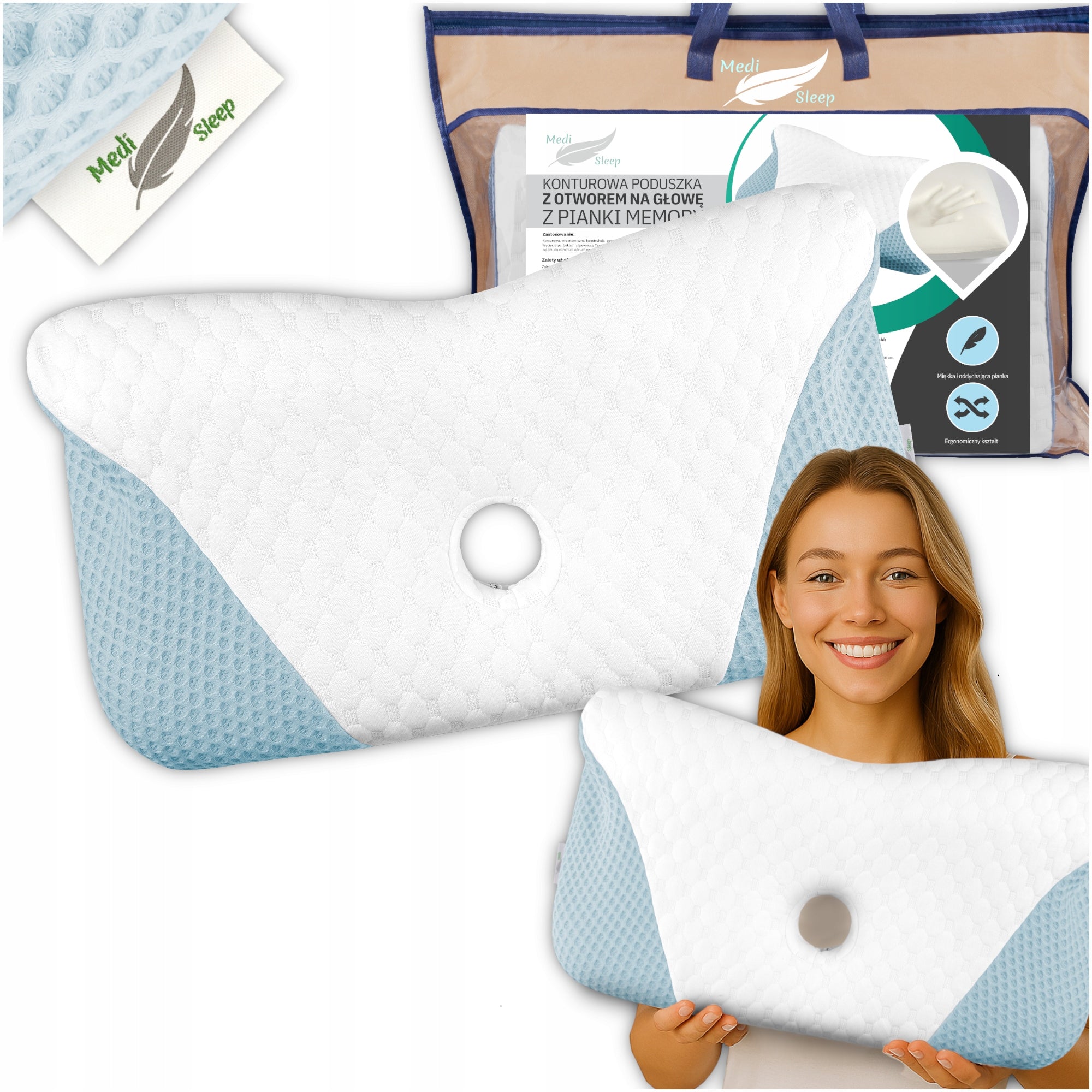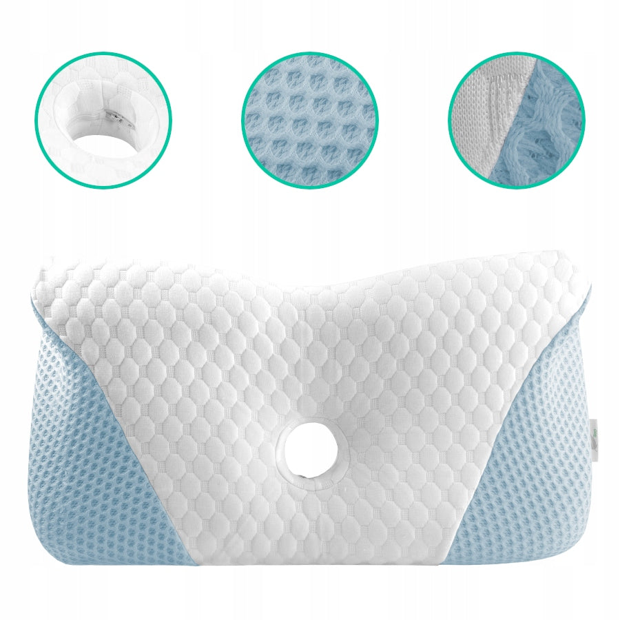 - Vėdinimas ir komfortas: Specialus 3D tinklelio audinys ir kvėpuojanti puta užtikrina gerą oro cirkuliaciją, neleidžiant galvai perkaisti miego metu.